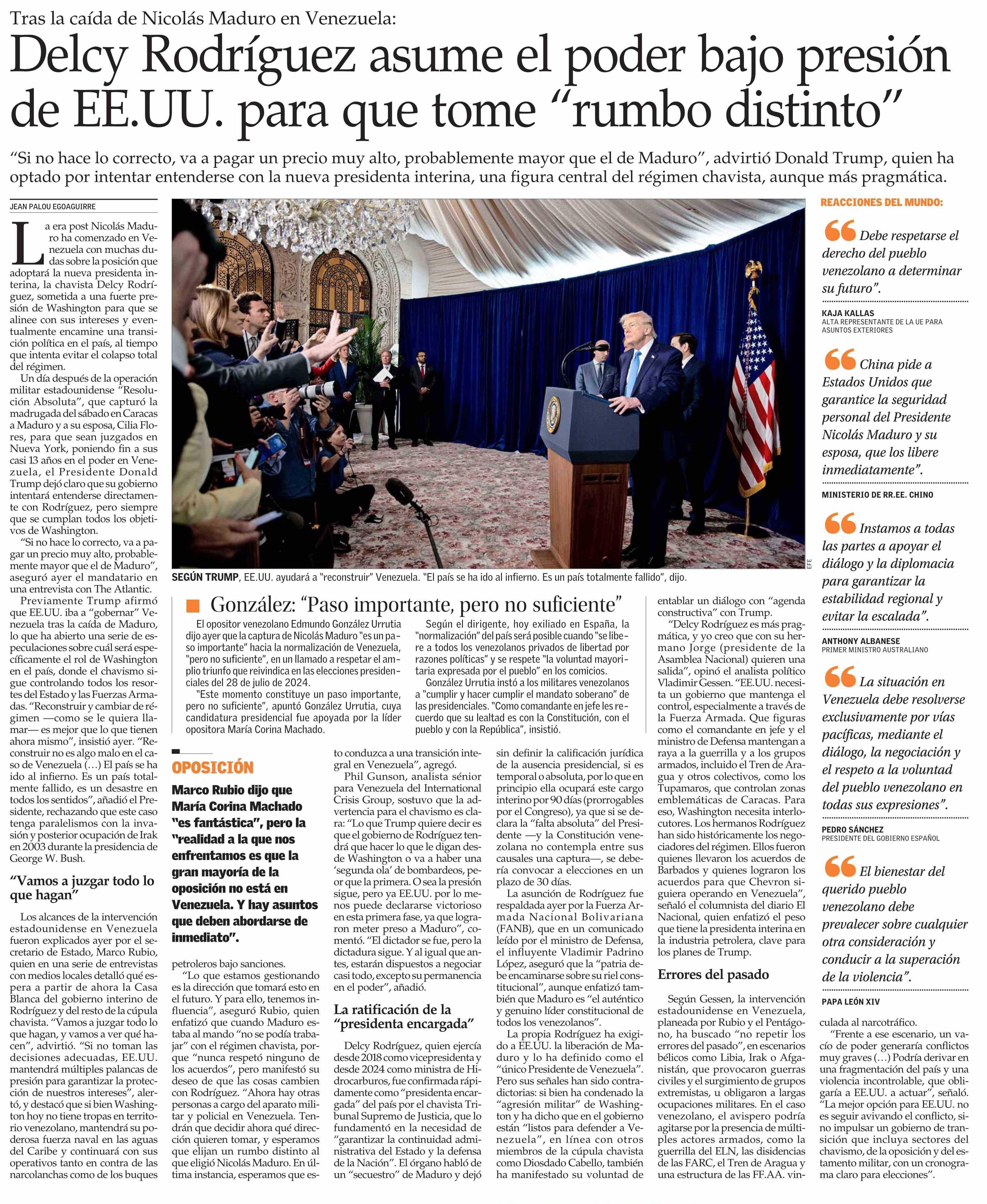 Delcy Rodríguez asume el poder bajo presión de EE.UU. para que tome “rumbo distinto” 05-01-2026 El Mercurio |