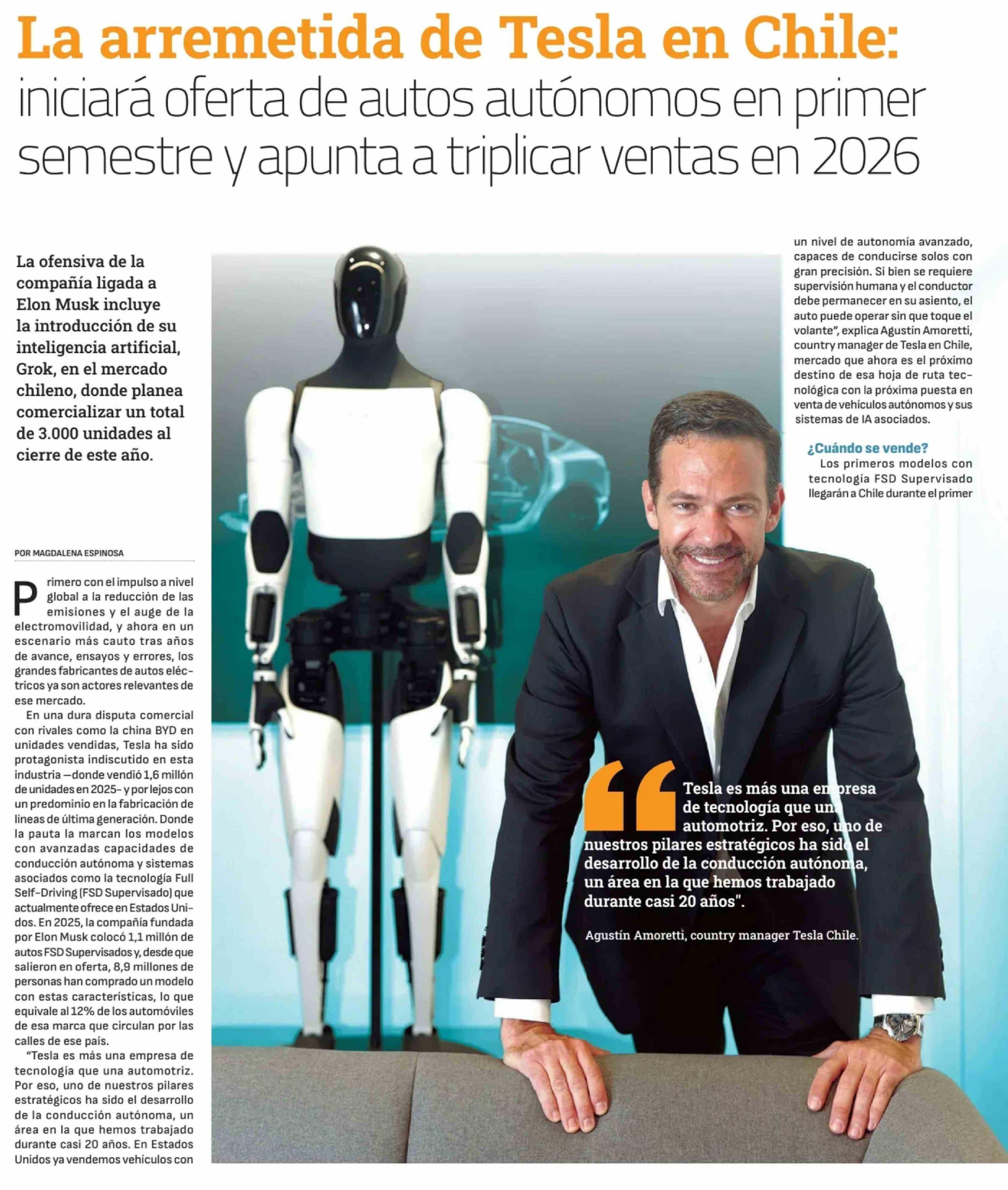 La arremetida de Tesla en Chile: iniciará oferta de autos autónomos en primer semestre y apunta a triplicar ventas en 2026 14-02-2026 Diario Financiero |