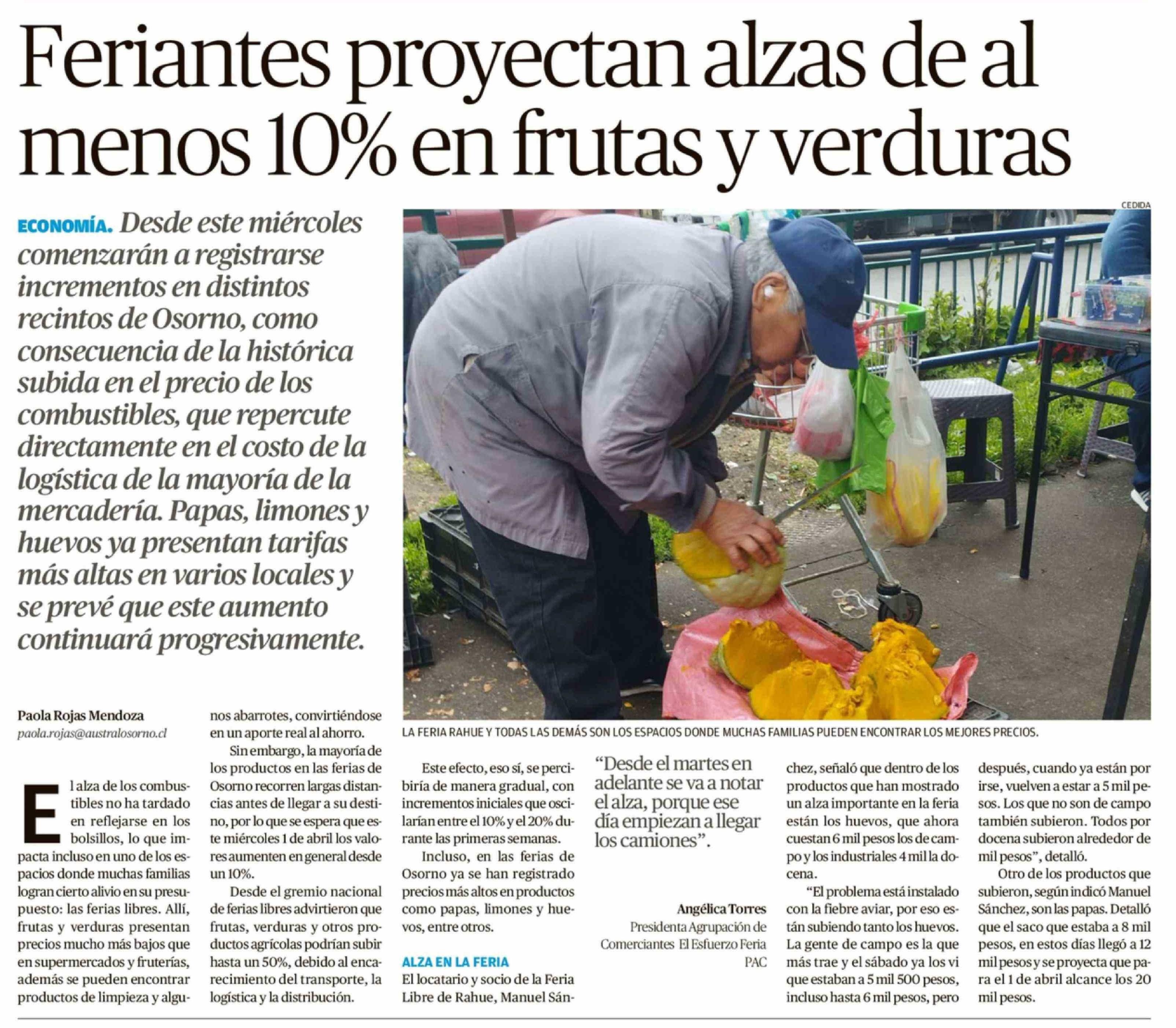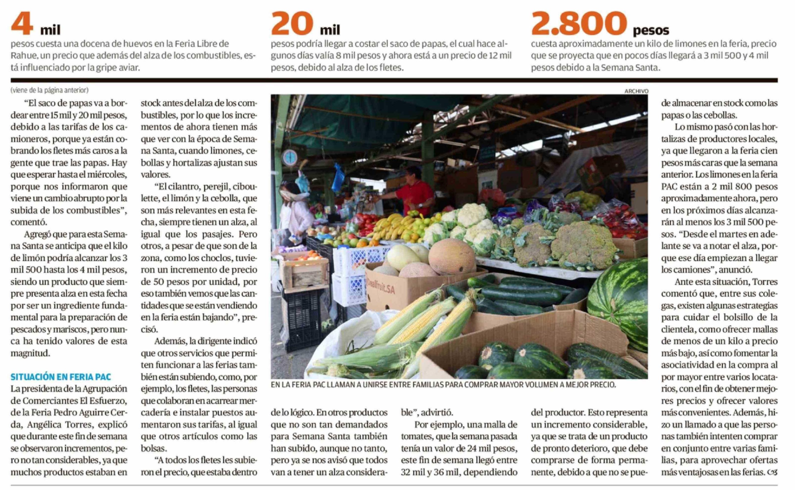 Título: Feriantes proyectan alzas de al menos 10% en frutas y verduras