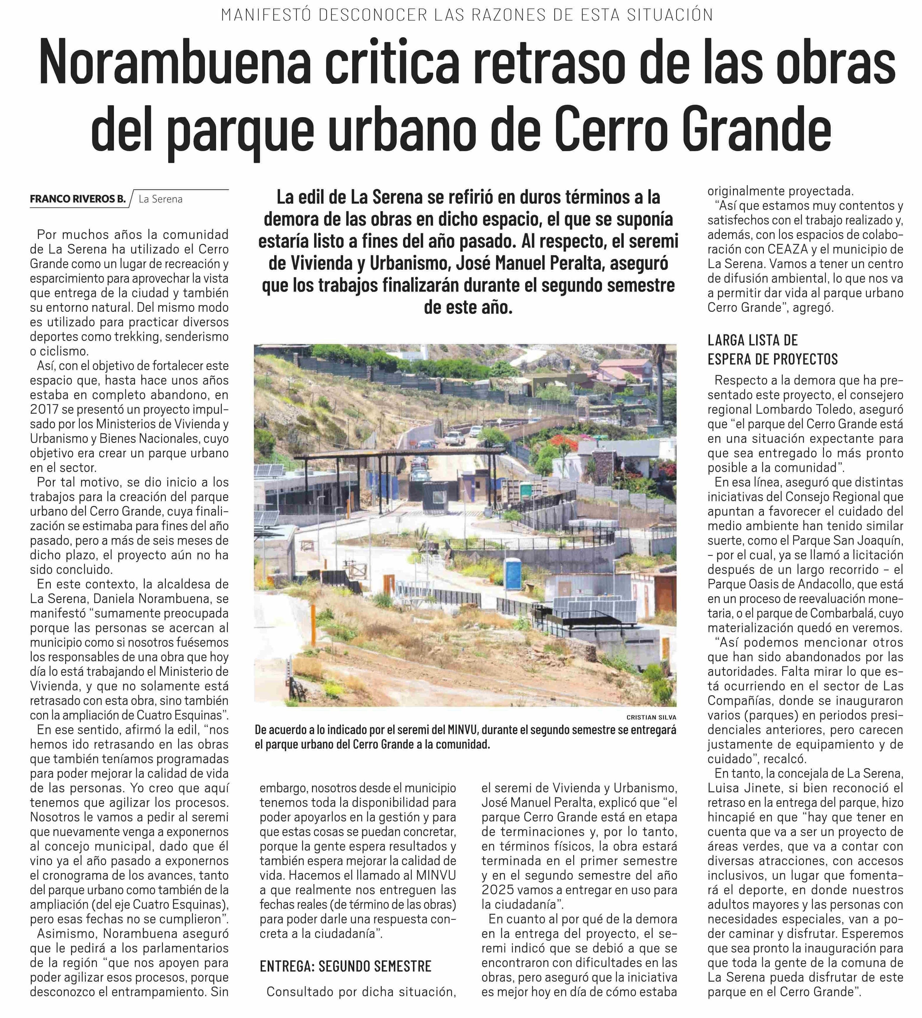 Título: Norambuena critica retraso de las obras del parque urbano de Cerro Grande