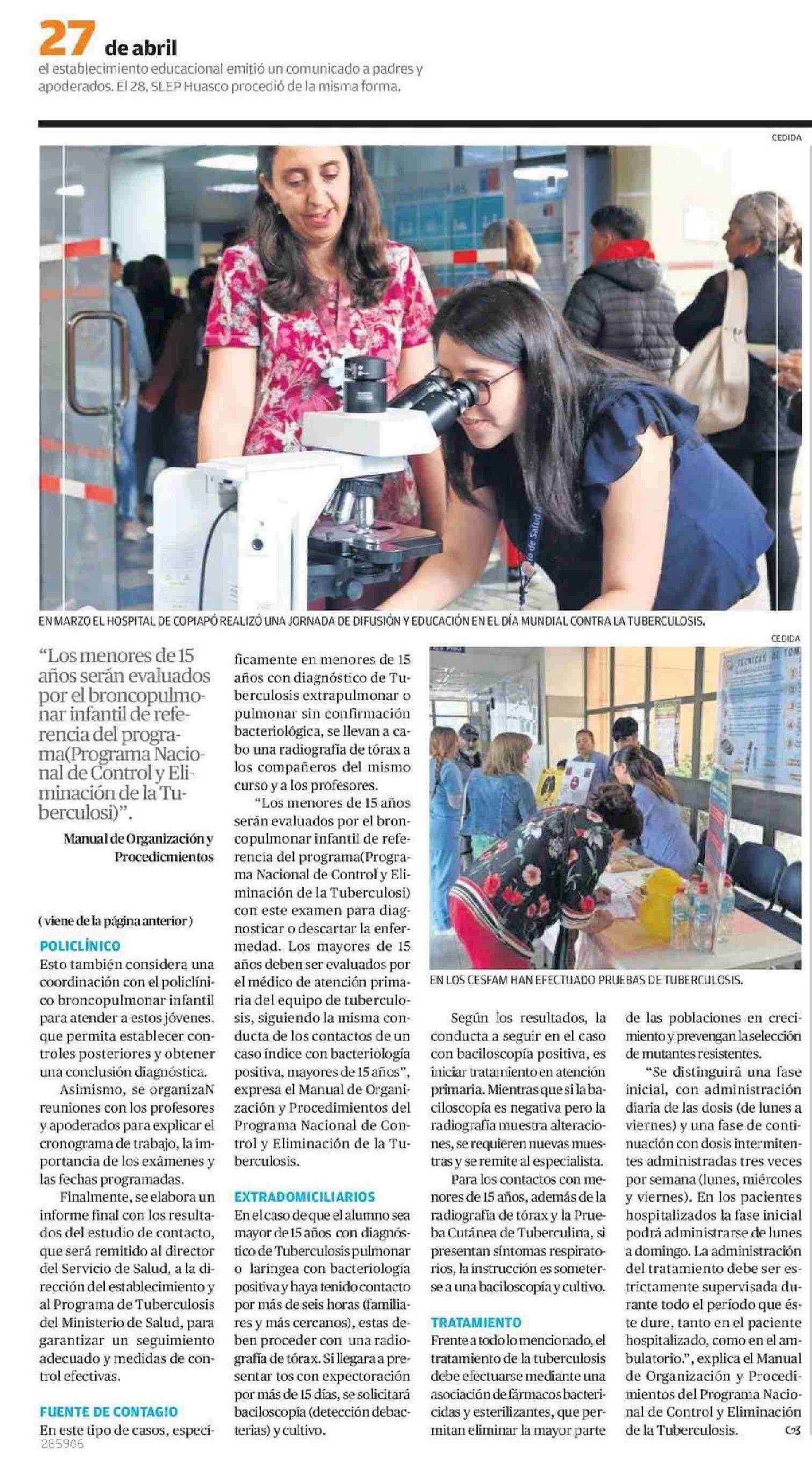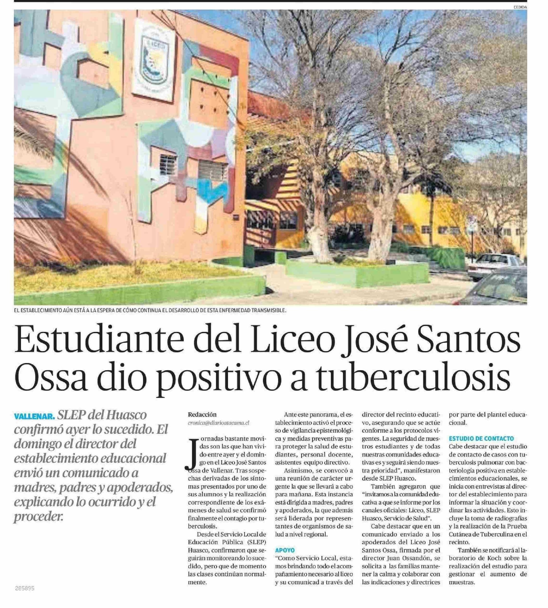 Estudiante del Liceo José Santos Ossa dio positivo a tuberculosis 29-04-2025 El Diario de Atacama |