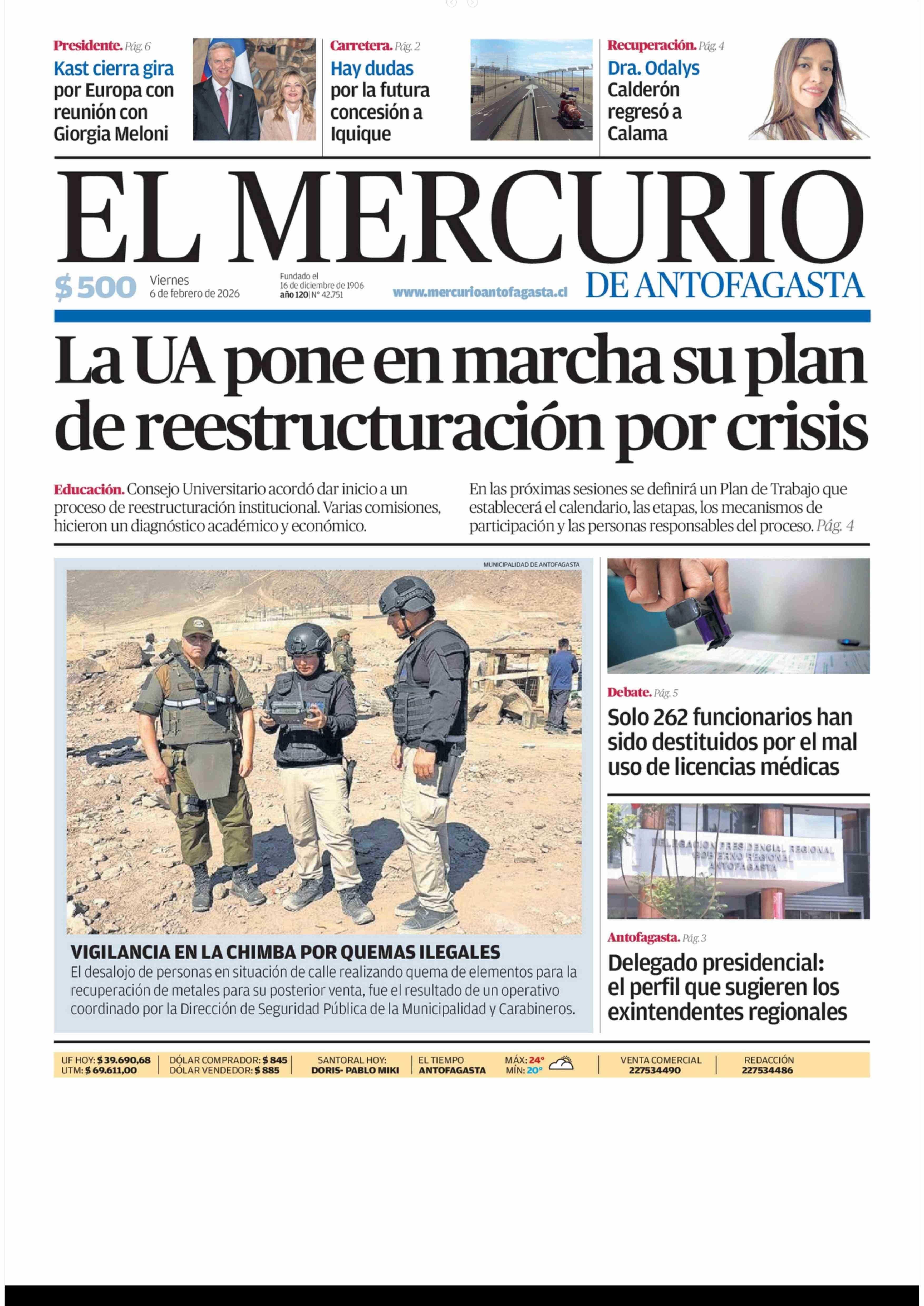 | Fecha: | 06-02-2026 | Sector: | Portada | Región: | Región de Antofagasta |