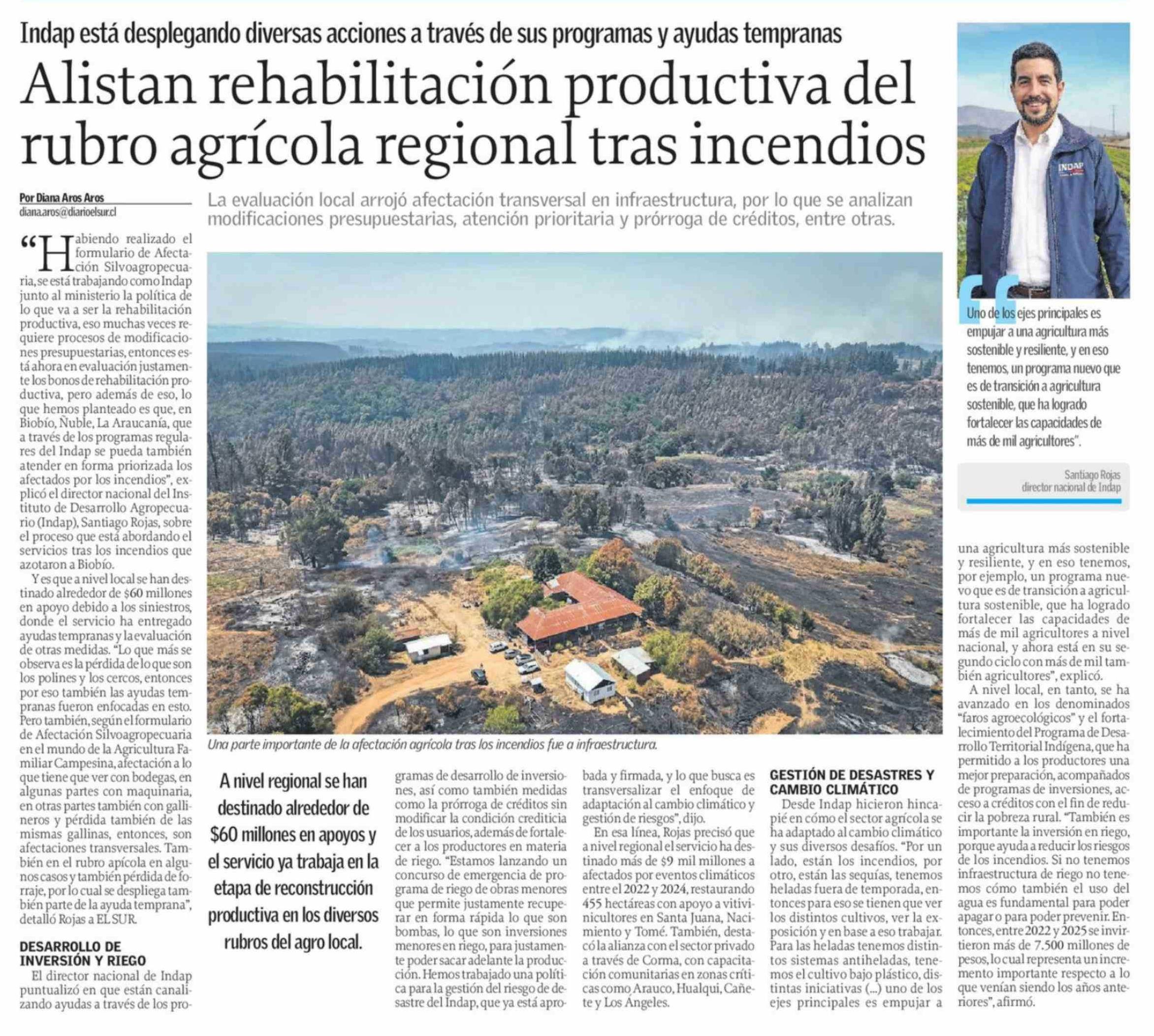 Alistan rehabilitación productiva del rubro agrícola regional tras incendios 07-03-2026 El Sur |
