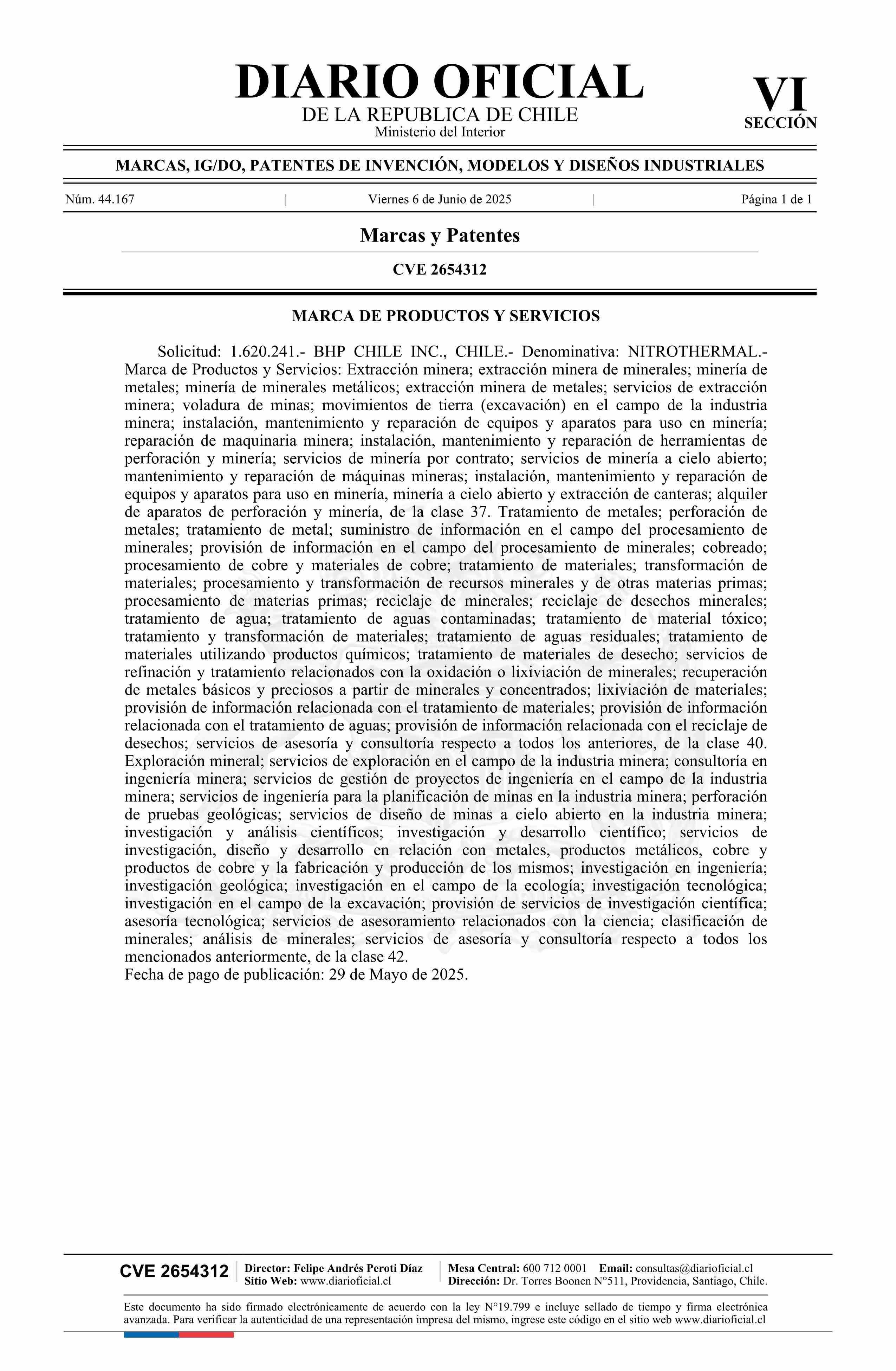 Solicitud número 1620241.- NITROTHERMAL 06-06-2025 Diario Oficial Edición Electrónica |