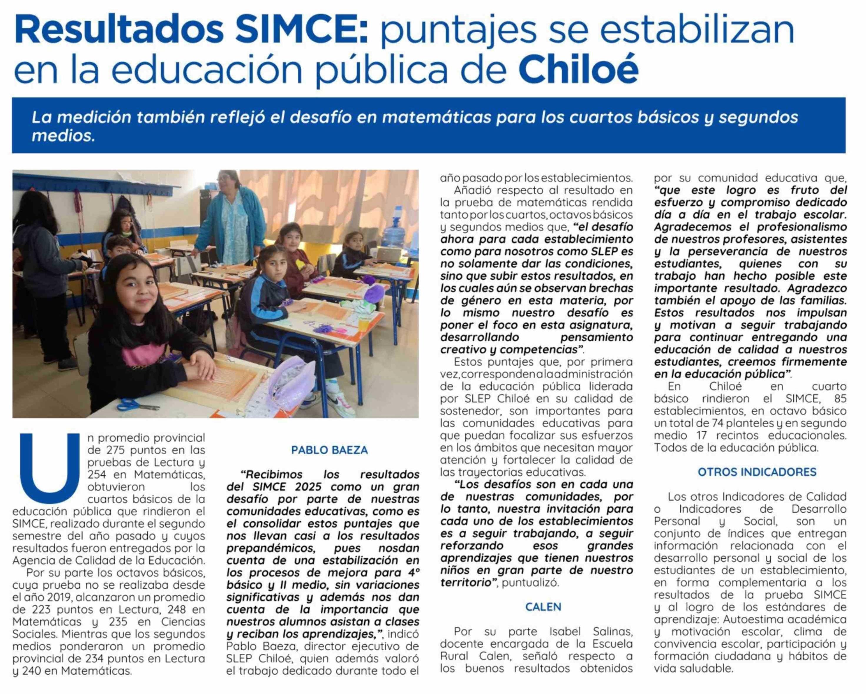 Título: Resultados SIMCE: puntajes se estabilizan en la educación pública de Chiloé