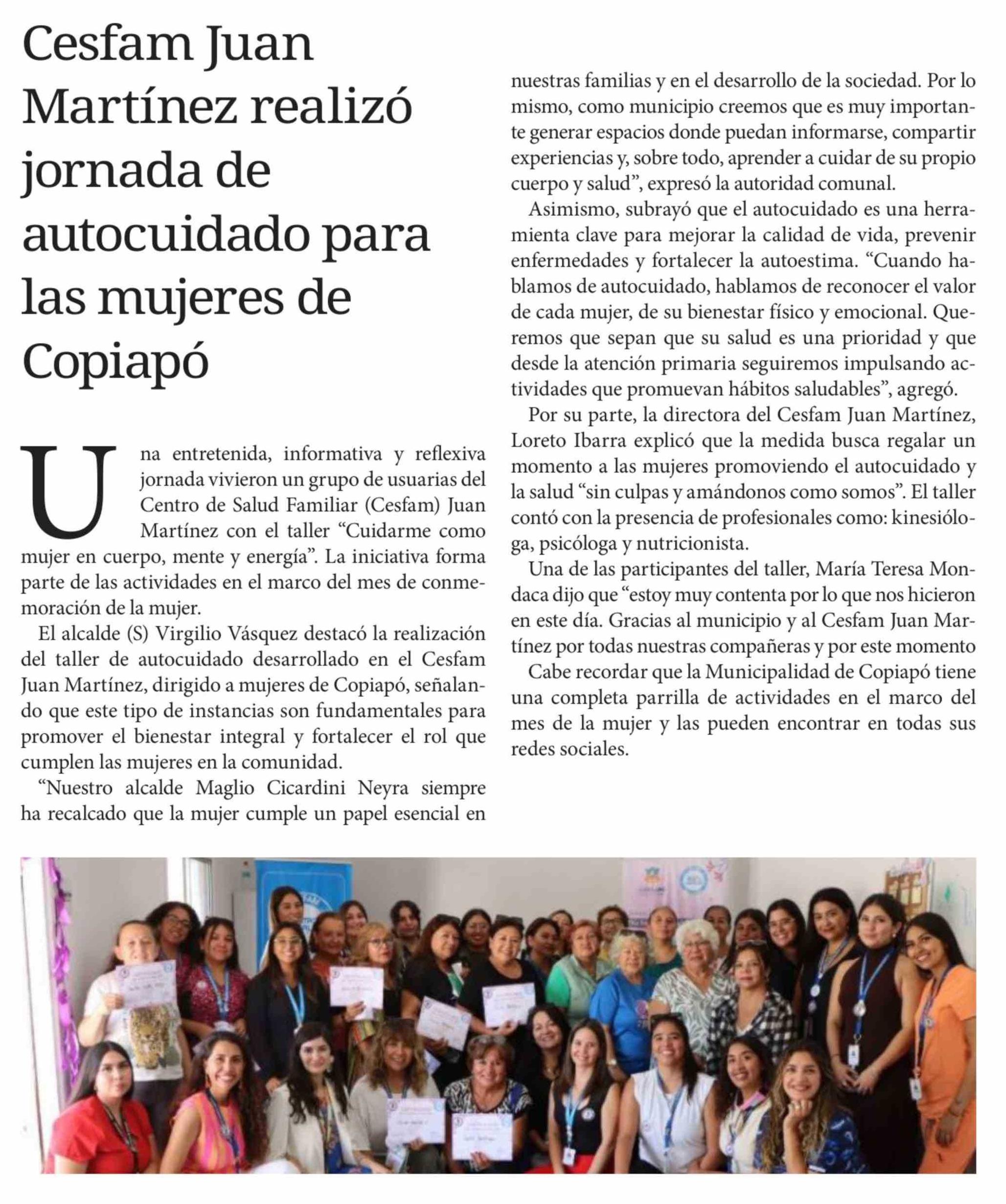 Cesfam Juan Martínez realizó jornada de autocuidado para las mujeres de Copiapó 12-03-2026 Diario Chañarcillo |