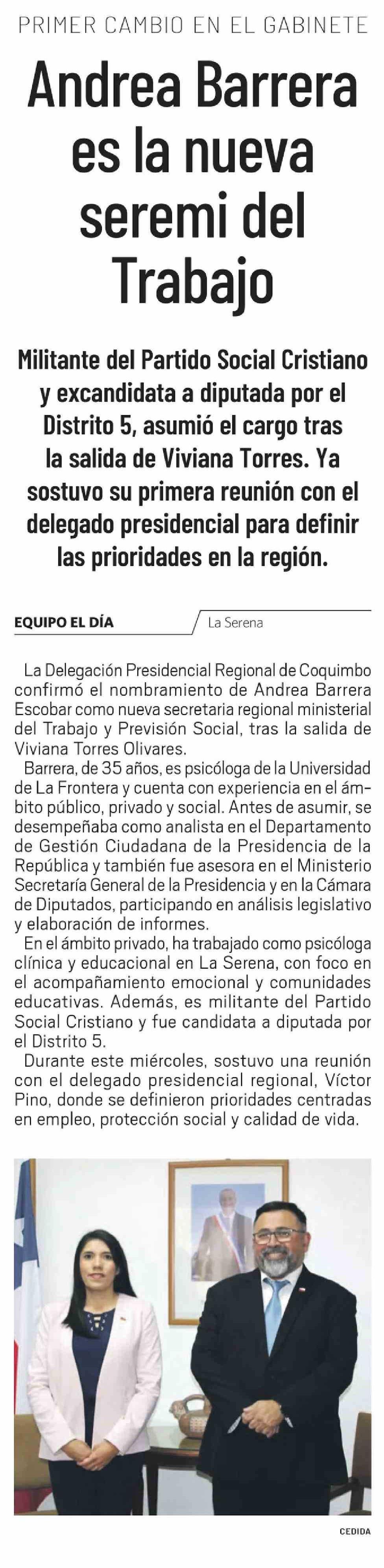 Título: Andrea Barrera es la nueva seremi del Trabajo