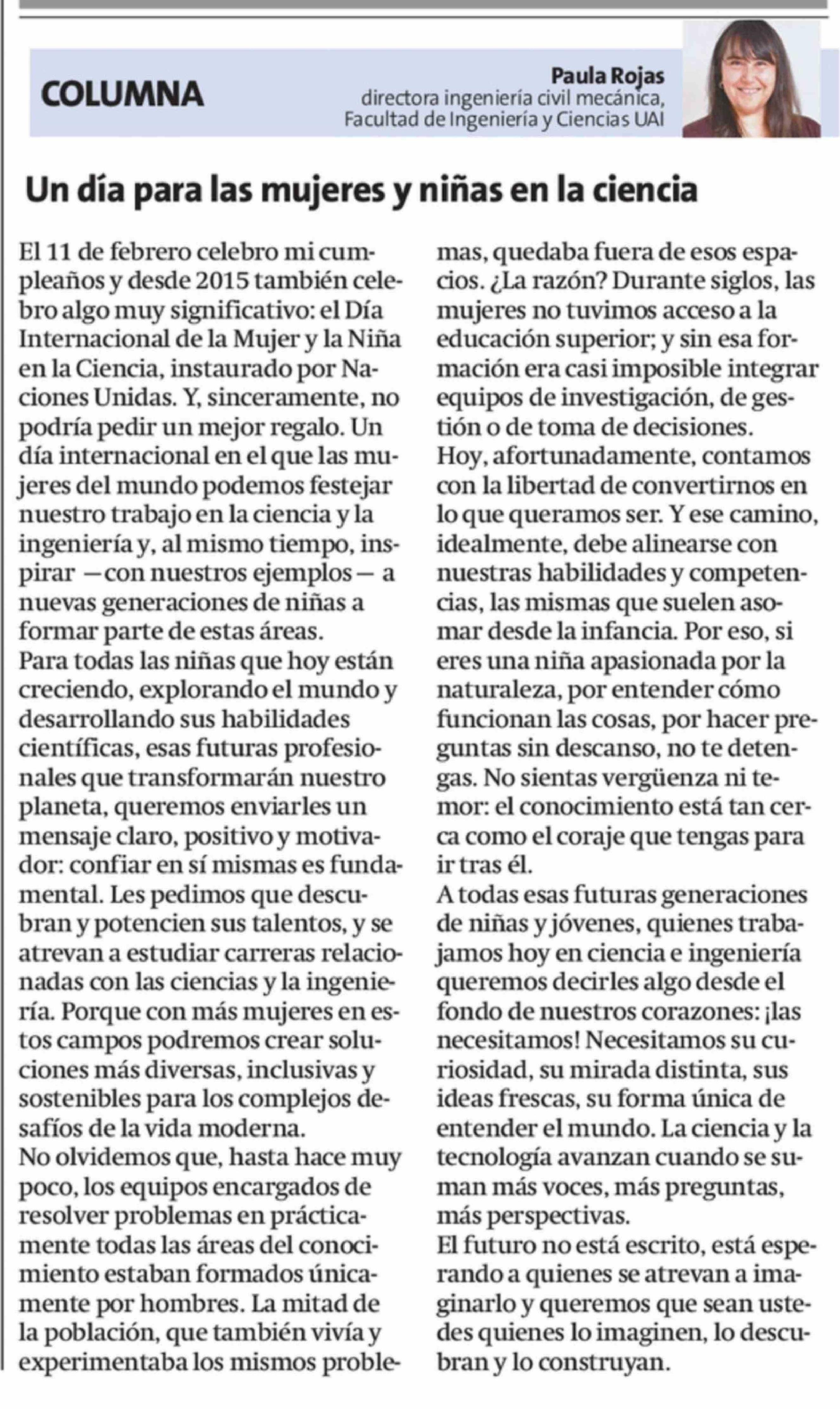 Título: Columnas de Opinión: Un día para las mujeres y niñas en la ciencia