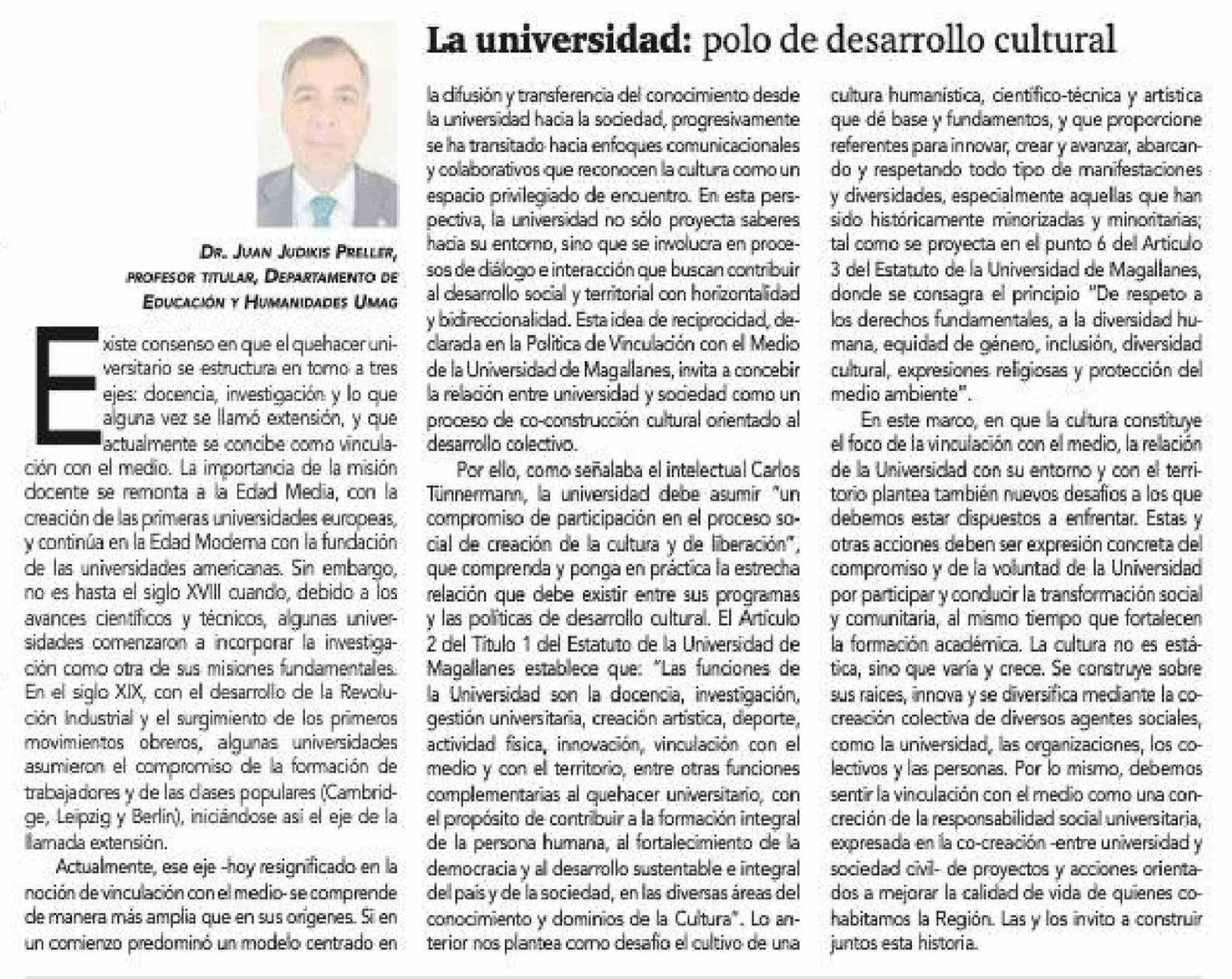 Columnas de Opinión: La universidad: polo de desarrollo cultural 21-03-2026 La Prensa Austral |