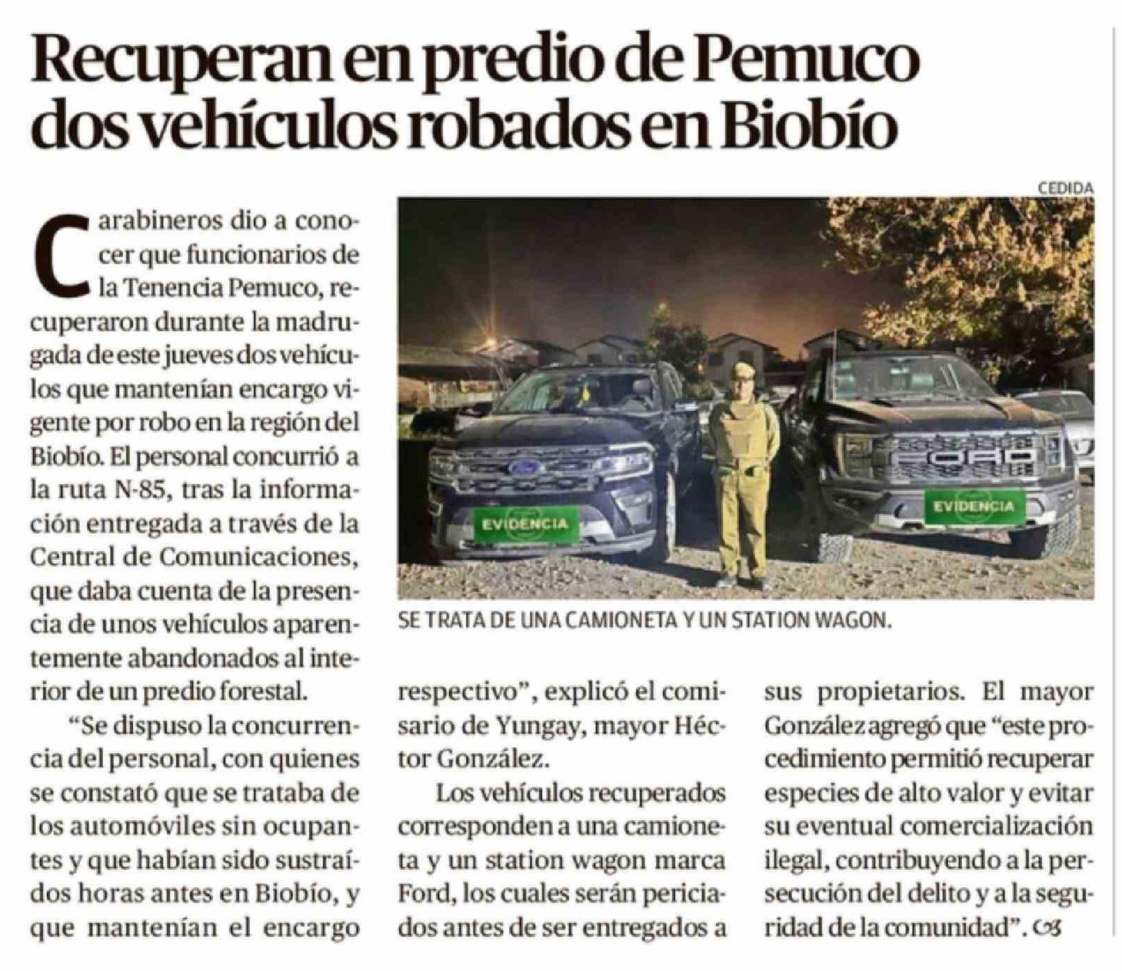 Título: Recuperan en predio de Pemuco dos vehículos robados en Biobío