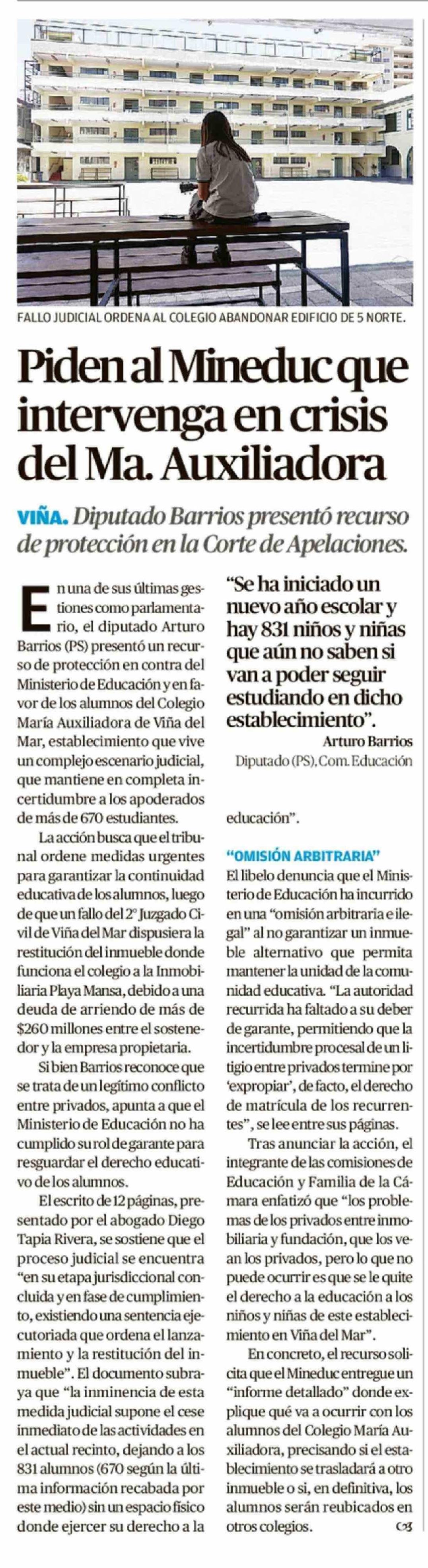 Título: Piden al Mineduc que intervenga en crisis del Ma. Auxiliadora