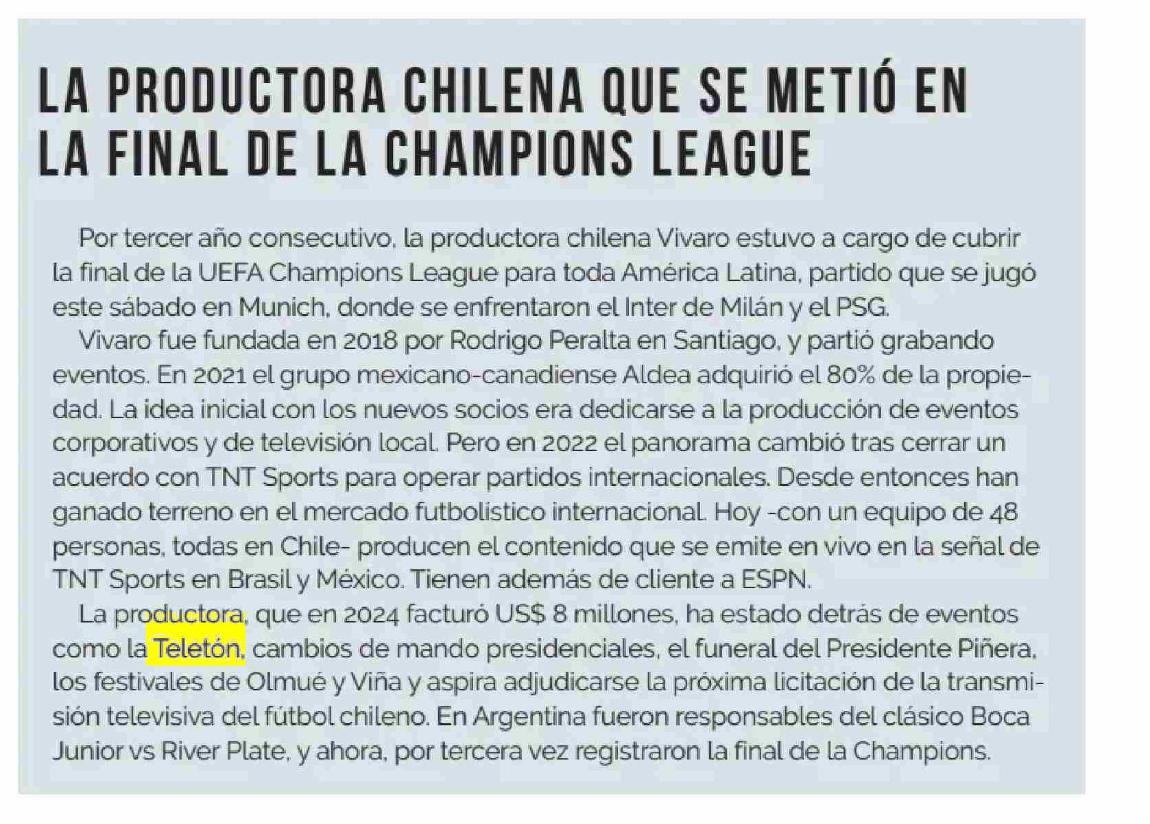 LA PRODUCTORA CHILENA QUE SE METIÓ EN LA FINAL DE LA CHAMPIONS LEAGUE 01-06-2025 Diario Financiero |