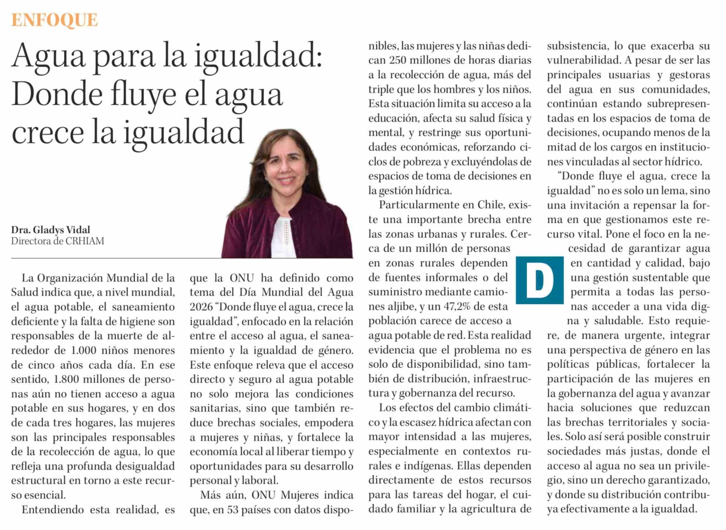 Título: Columnas de Opinión: Agua para la igualdad: Donde fluye el agua crece la igualdad