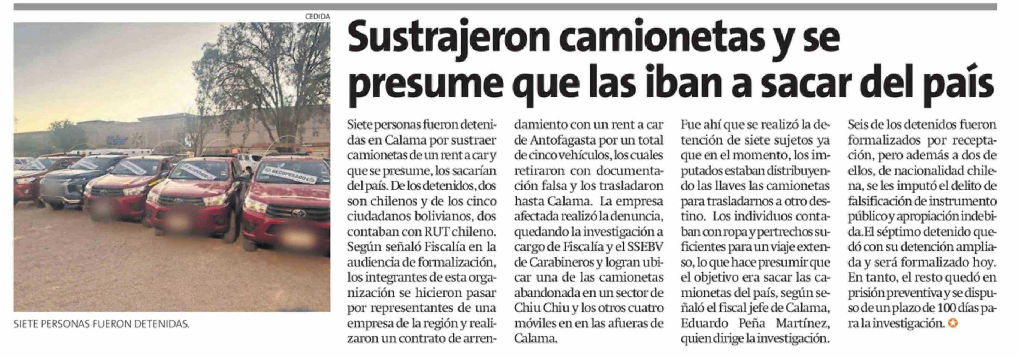 Título: Sustrajeron camionetas y se presume que las iban a sacar del país