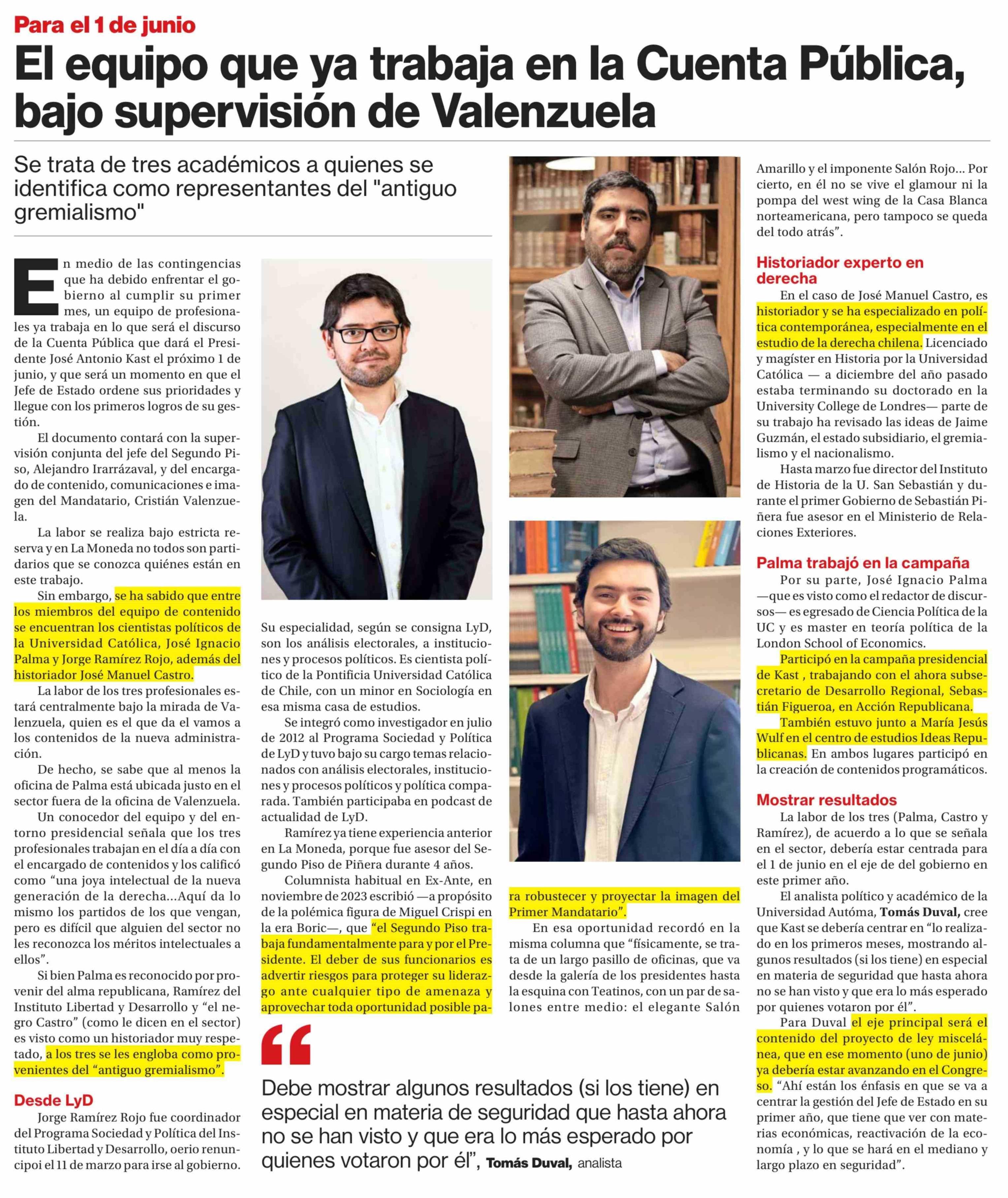El equipo que ya trabaja en la Cuenta Pública, bajo supervisión de Valenzuela 14-04-2026 La Segunda |
