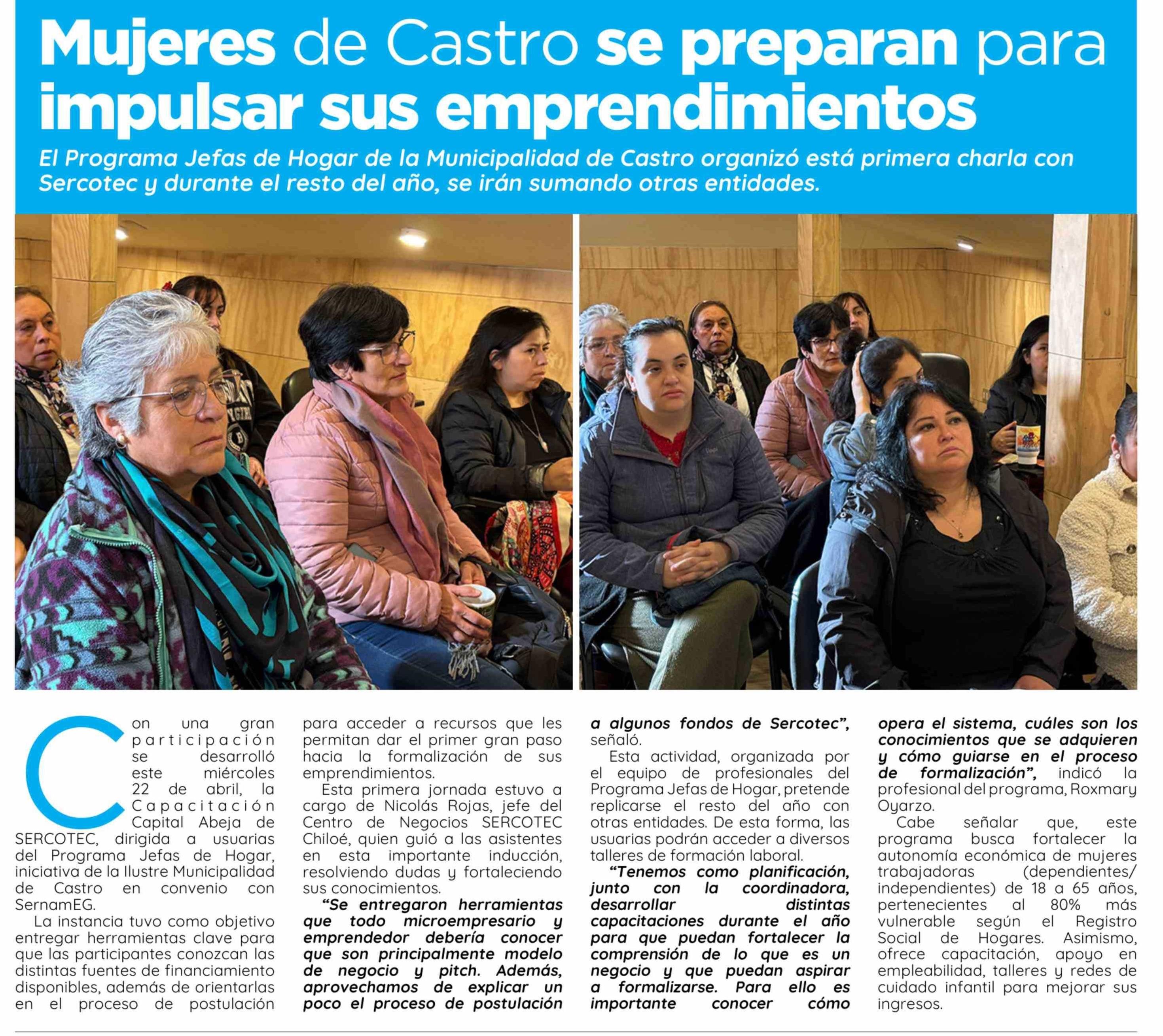 Título: Mujeres de Castro se preparan para impulsar sus emprendimientos