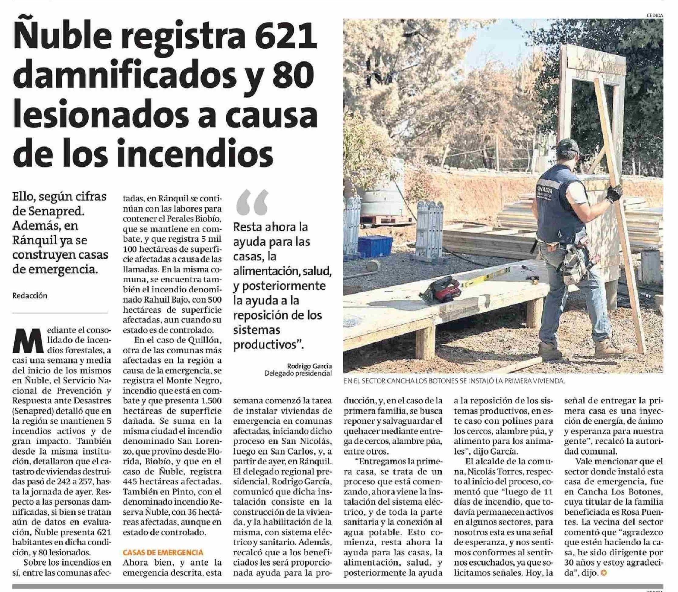 | Título: | Ñuble registra 621 damnificados y 80 lesionados a causa de los incendios |