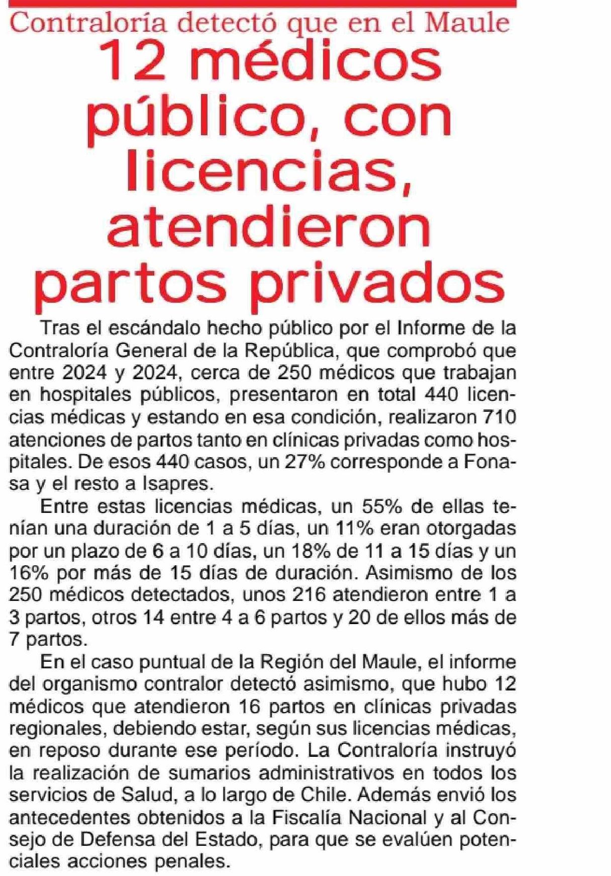 12 médicos público, con licencias, atendieron partos privados 28-05-2025 Maule Hoy |