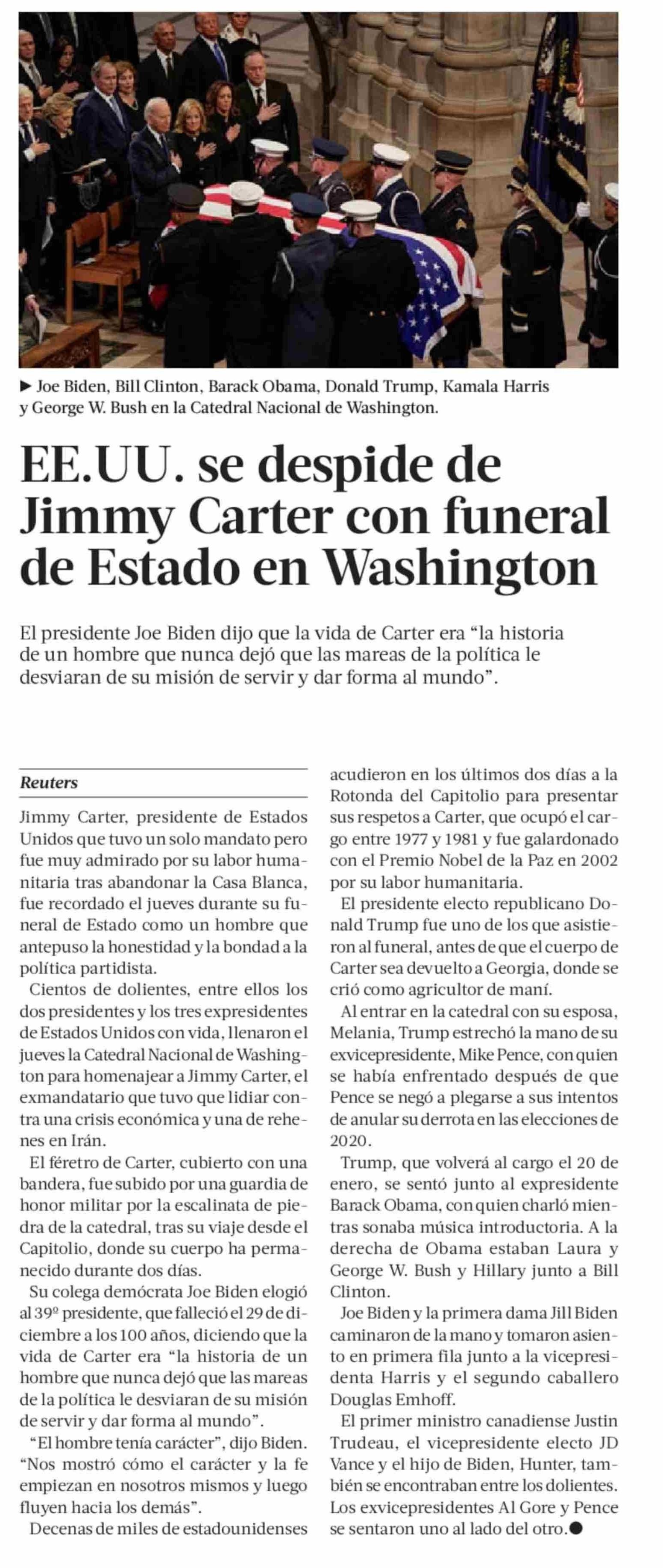 | Título: | EE.UU. se despide de Jimmy Carter con funeral de Estado en Washington |