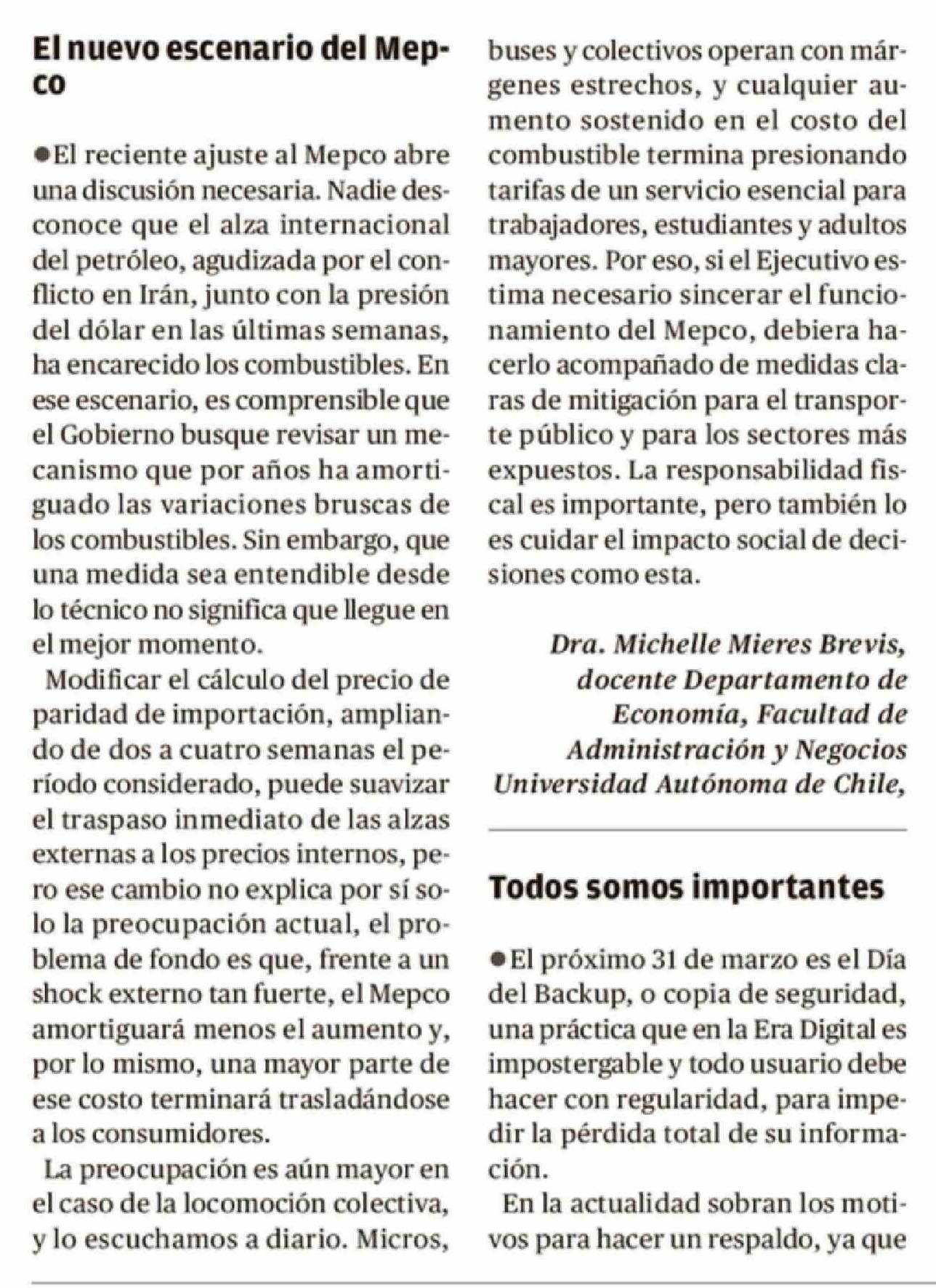 Cartas: El nuevo escenario del Mepco 26-03-2026 Crónica de Chillán |