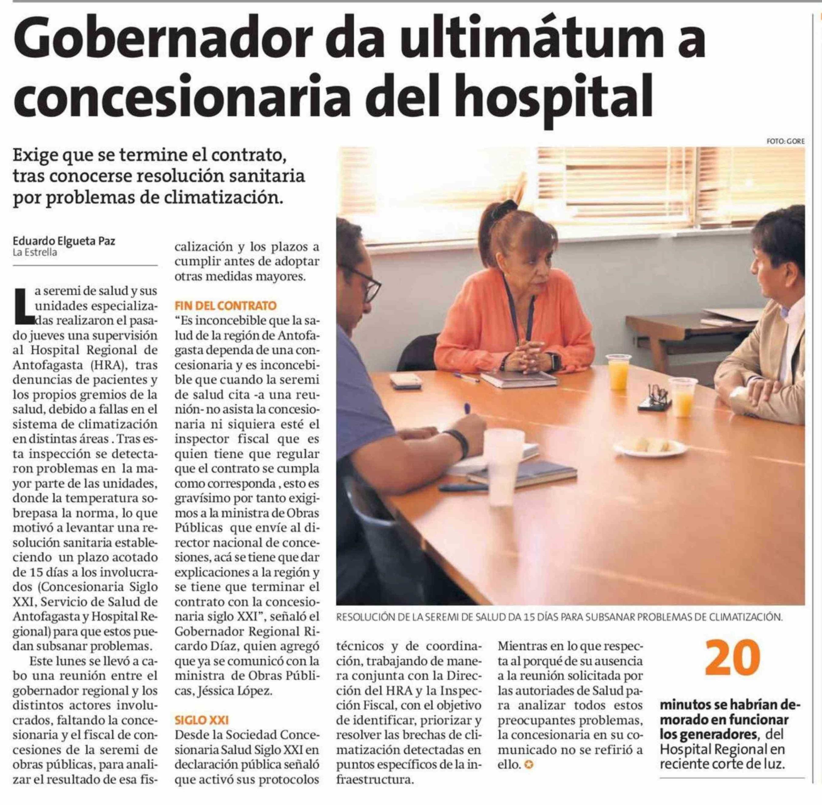Gobernador da ultimátum a concesionaria del hospital 27-01-2026 La Estrella de Antofagasta |