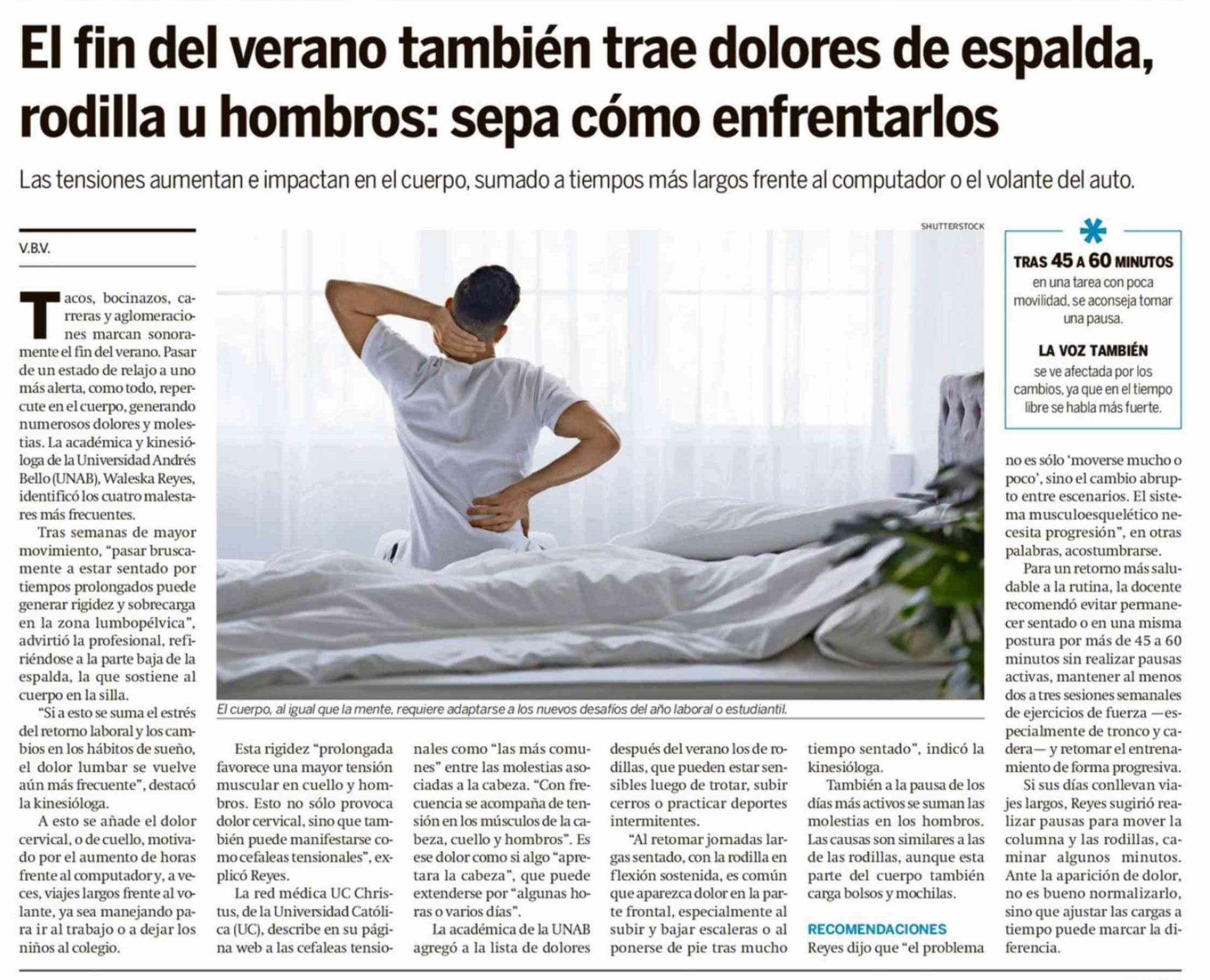 Título: El fin del verano también trae dolores de espalda, rodilla u hombros: sepa cómo enfrentarlos