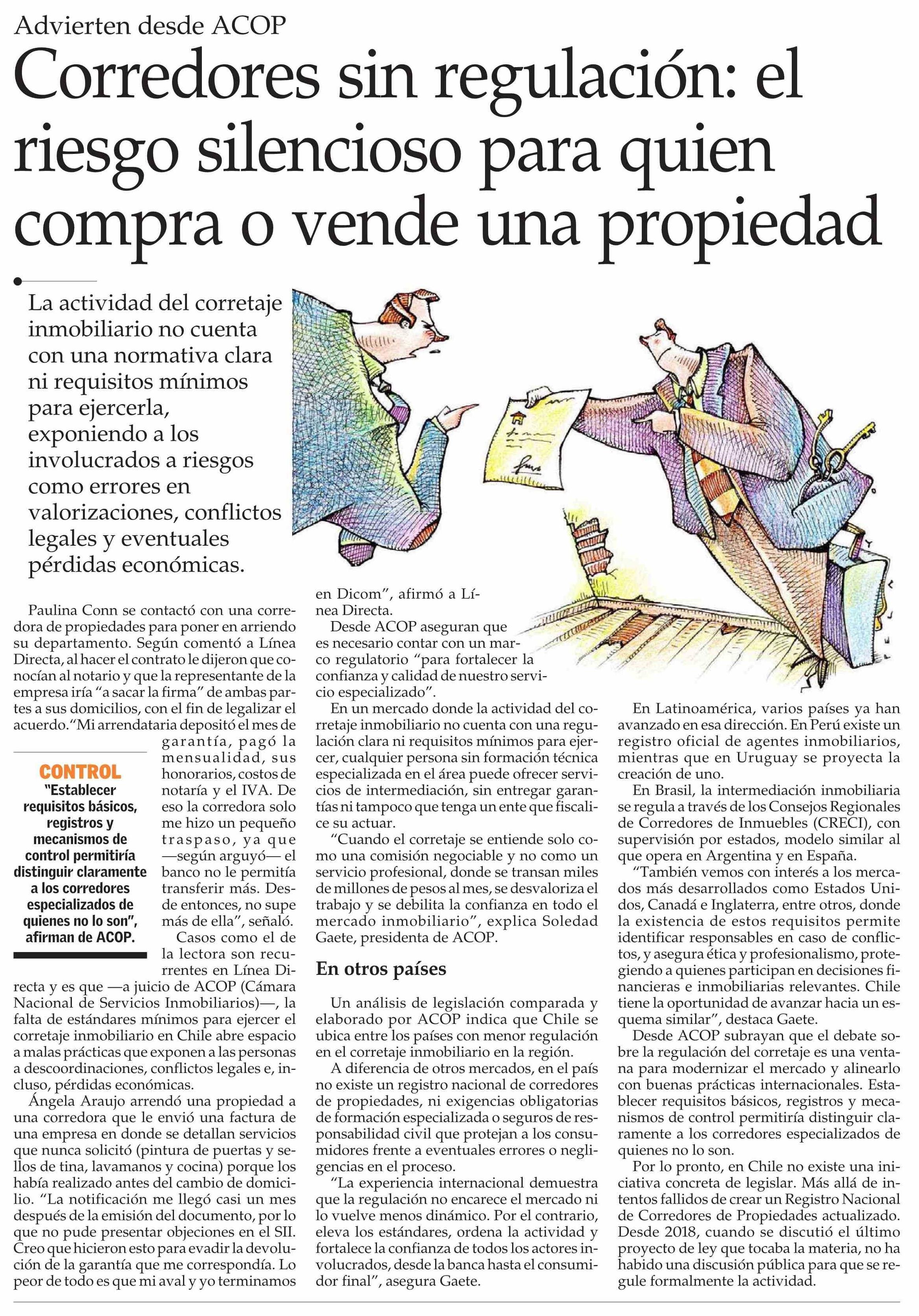 Corredores sin regulación: el riesgo silencioso para quien compra o vende una propiedad 02-03-2026 El Mercurio |