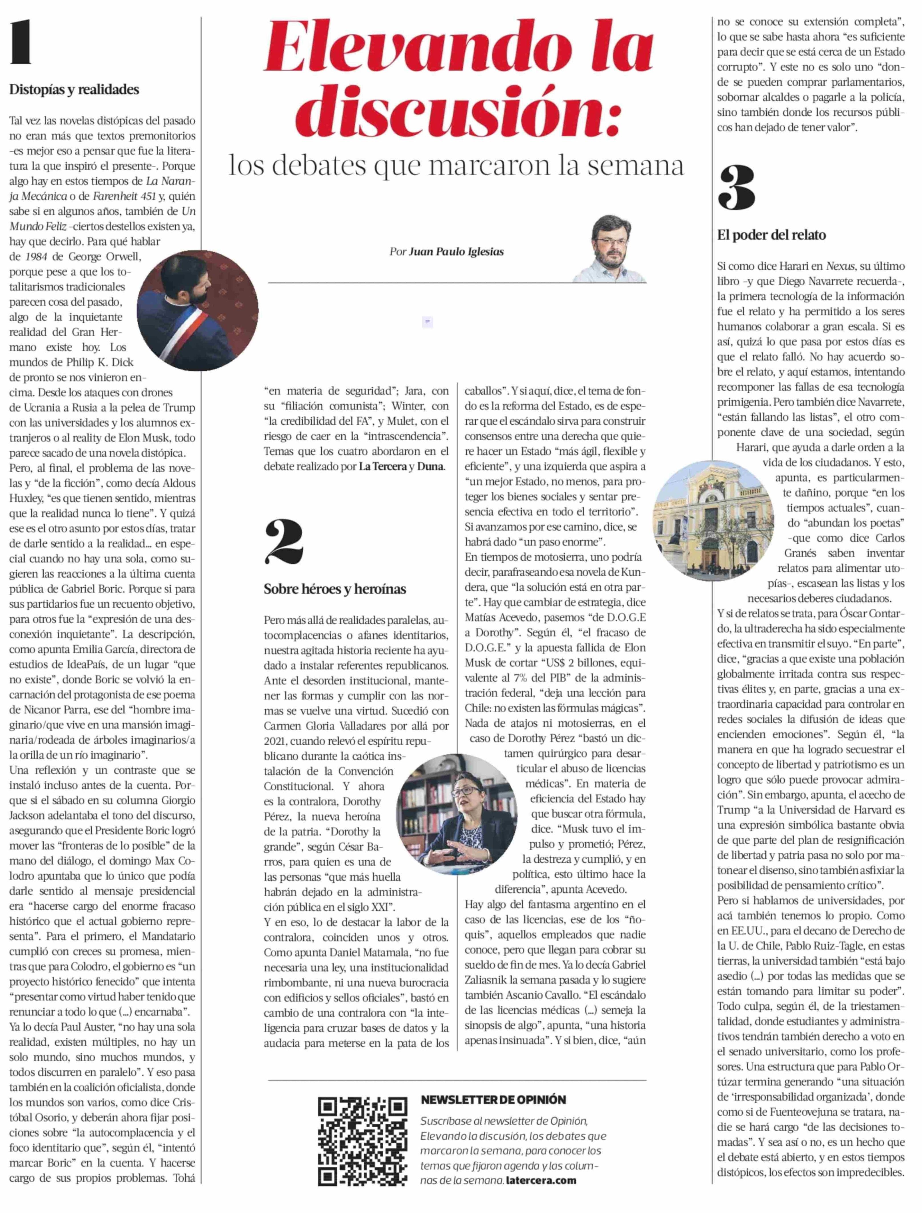 Elevando la discusión: 07-06-2025 La Tercera |