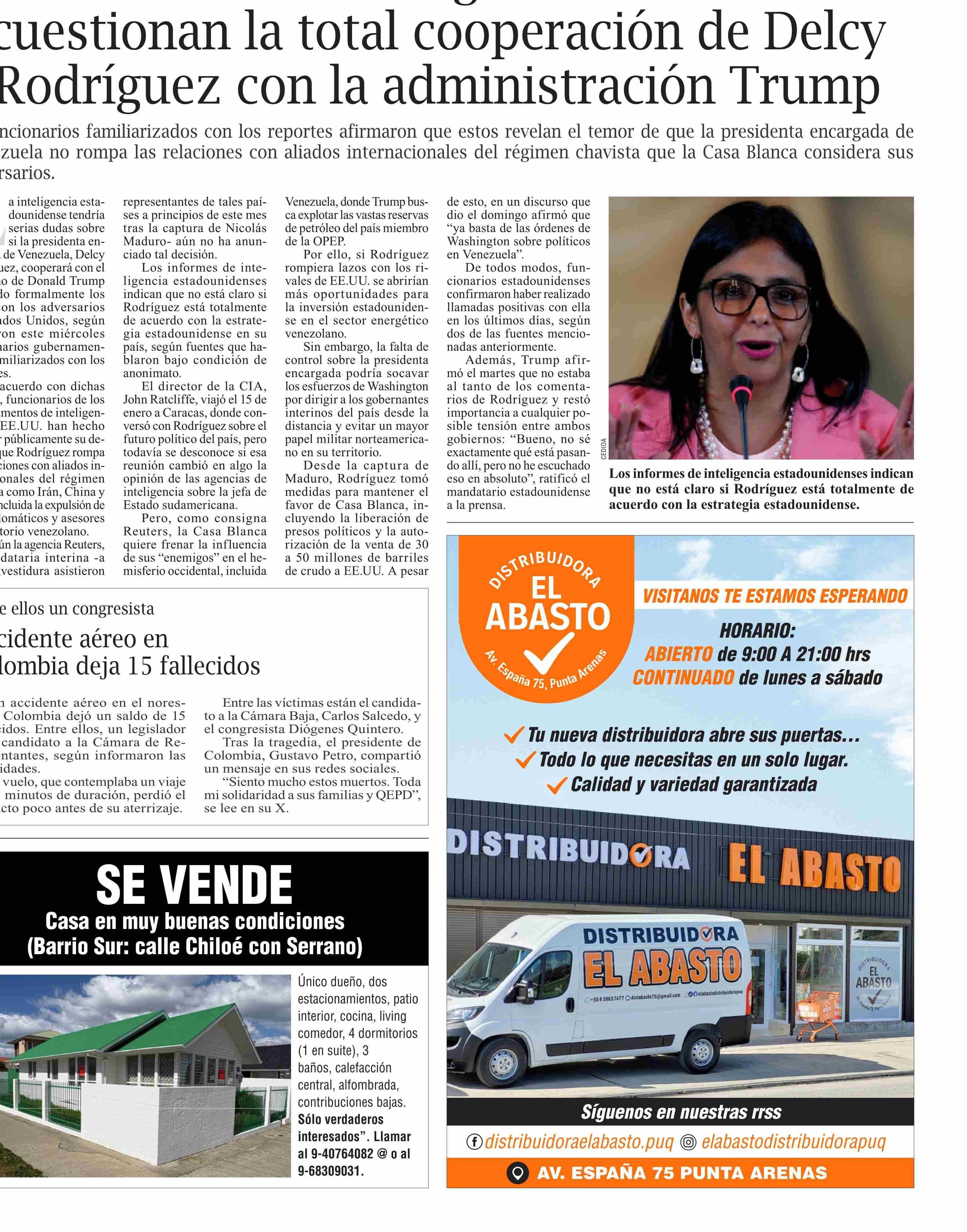 Título: Informes de inteligencia de EE.UU. cuestionan la total cooperación de Delcy Rodríguez con la administración Trump