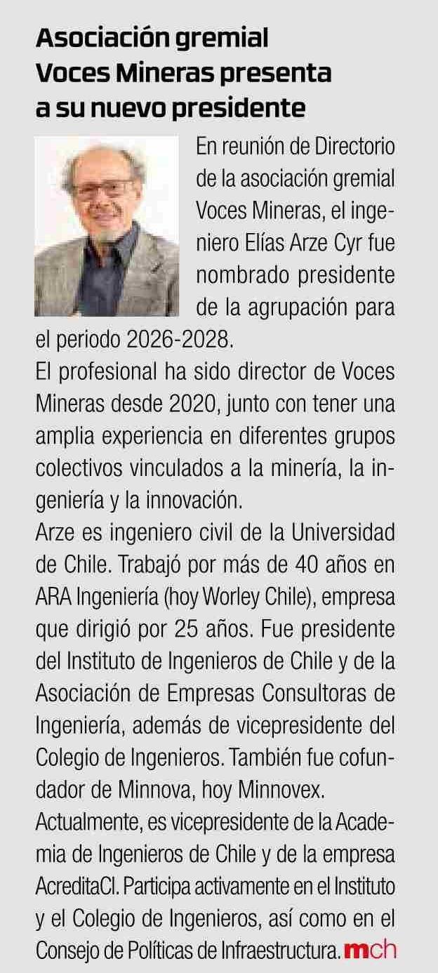 Asociación gremial Voces Mineras presenta a su nuevo presidente 19-03-2026 Revista Minería Chilena |