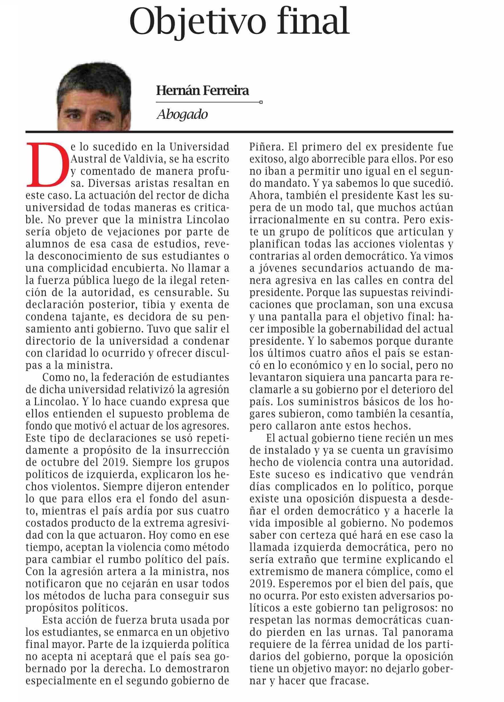 | Título: | COLUMNAS DE OPINIÓN: Objetivo final |
