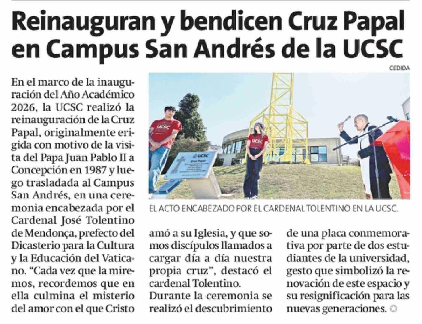 Título: Reinauguran y bendicen Cruz Papal en Campus San Andrés de la UCSC