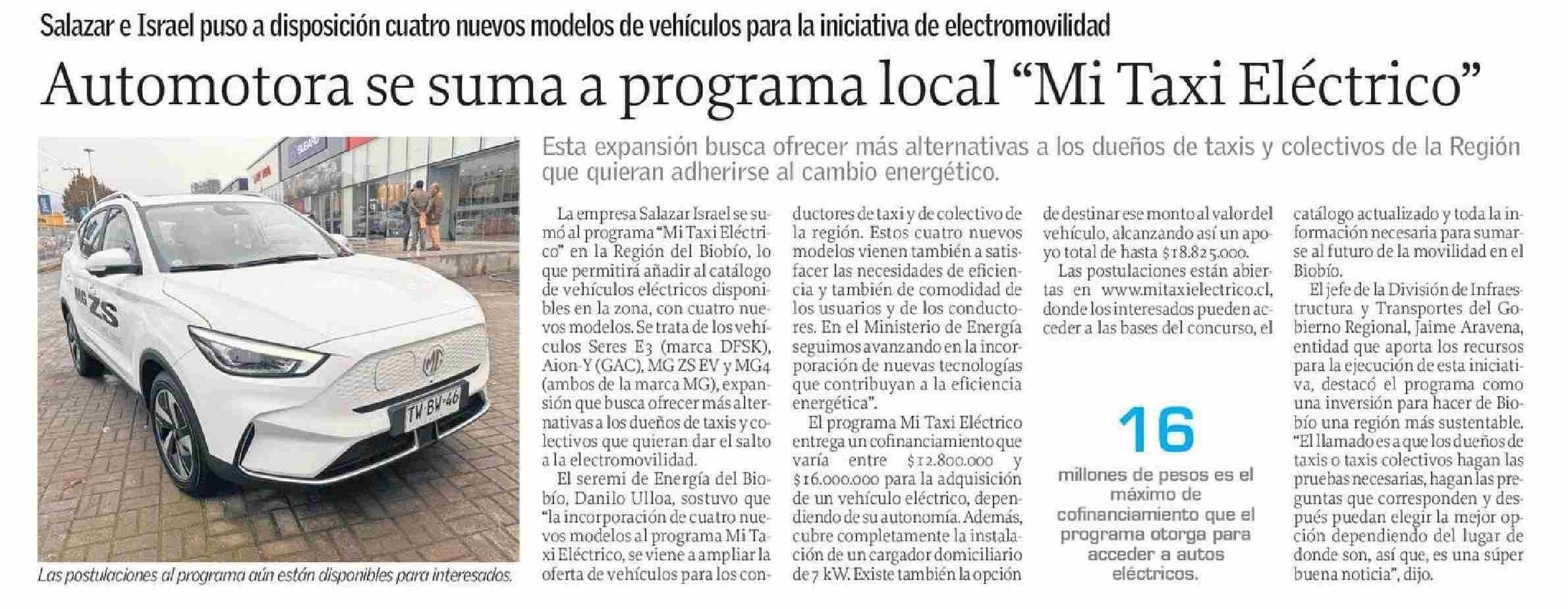 Automotora se suma a programa local “Mi Taxi Eléctrico” 24-05-2025 El Sur |