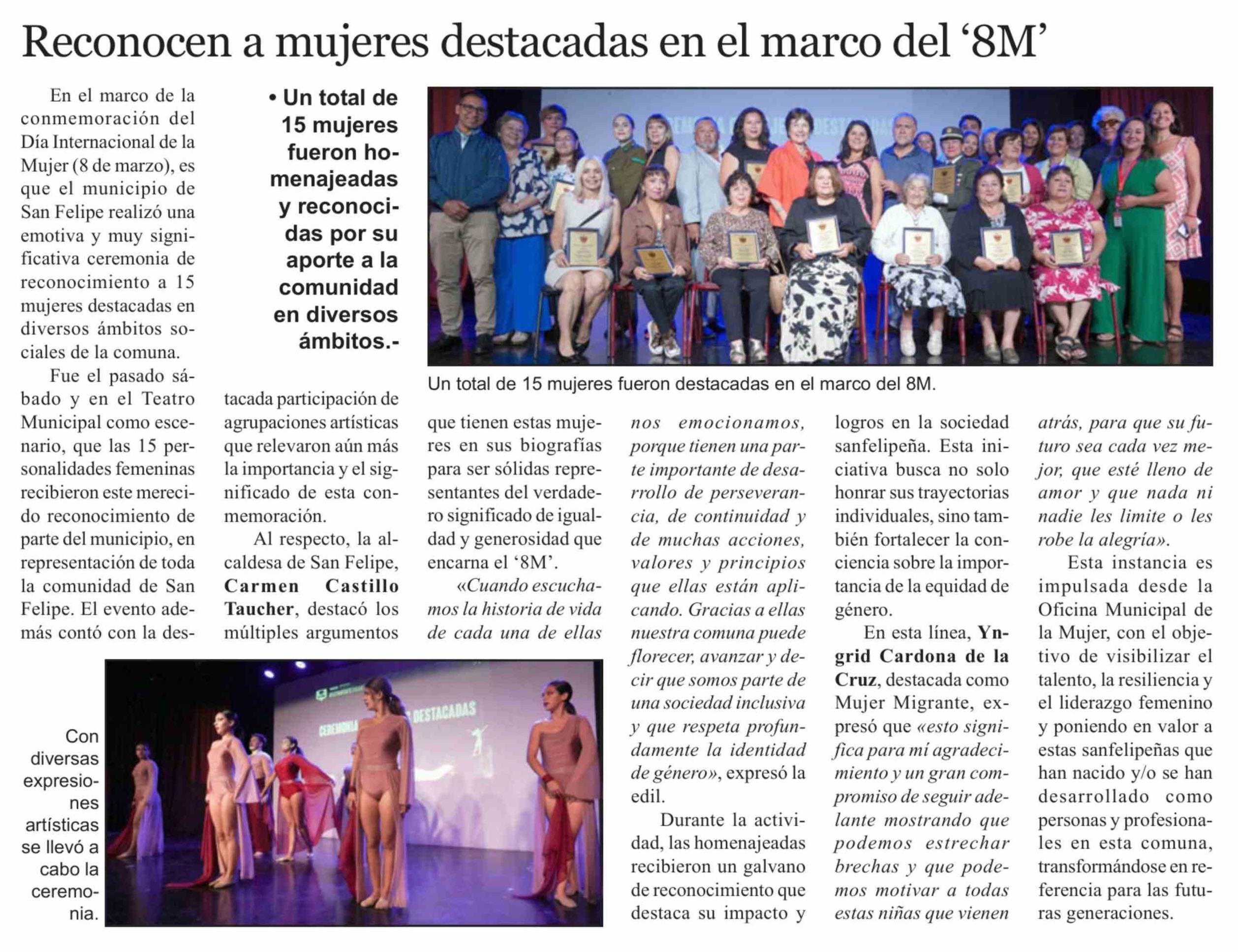 Título: Reconocen a mujeres destacadas en el marco del '8M'