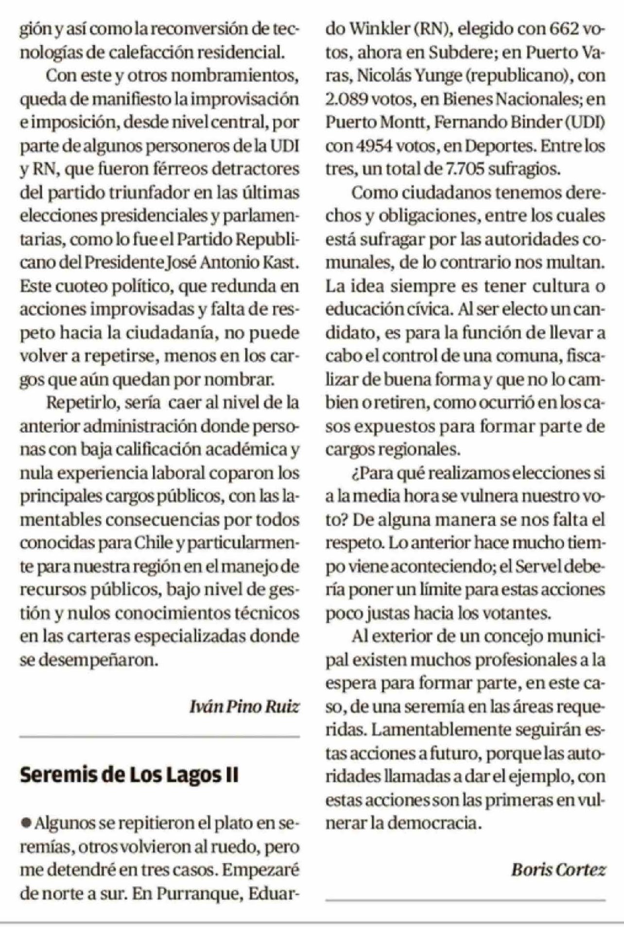 Cartas: Seremis de Los Lagos II 11-04-2026 El Llanquihue |