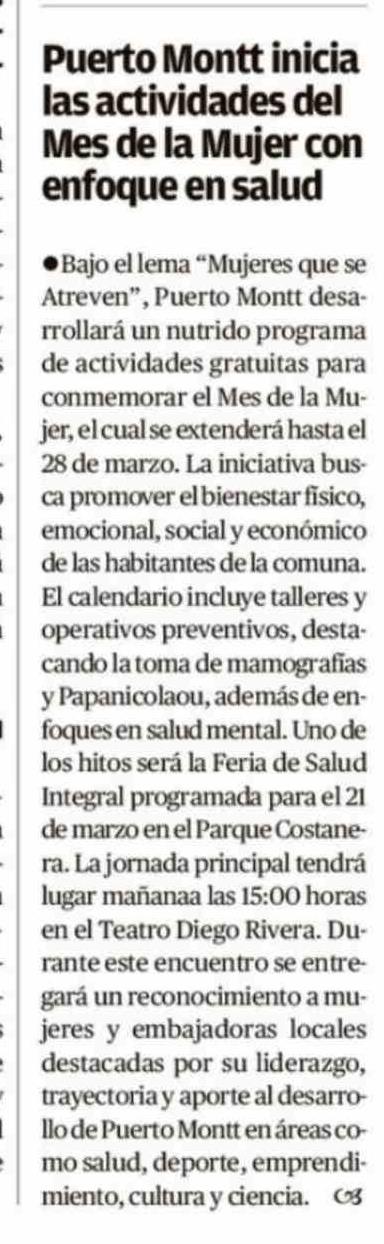 Título: Puerto Montt inicia las actividades del Mes de la Mujer con enfoque en salud