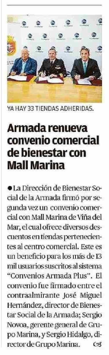 Armada renueva convenio comercial de bienestar con Mall Marina 24-01-2024 El Mercurio de Valparaíso |