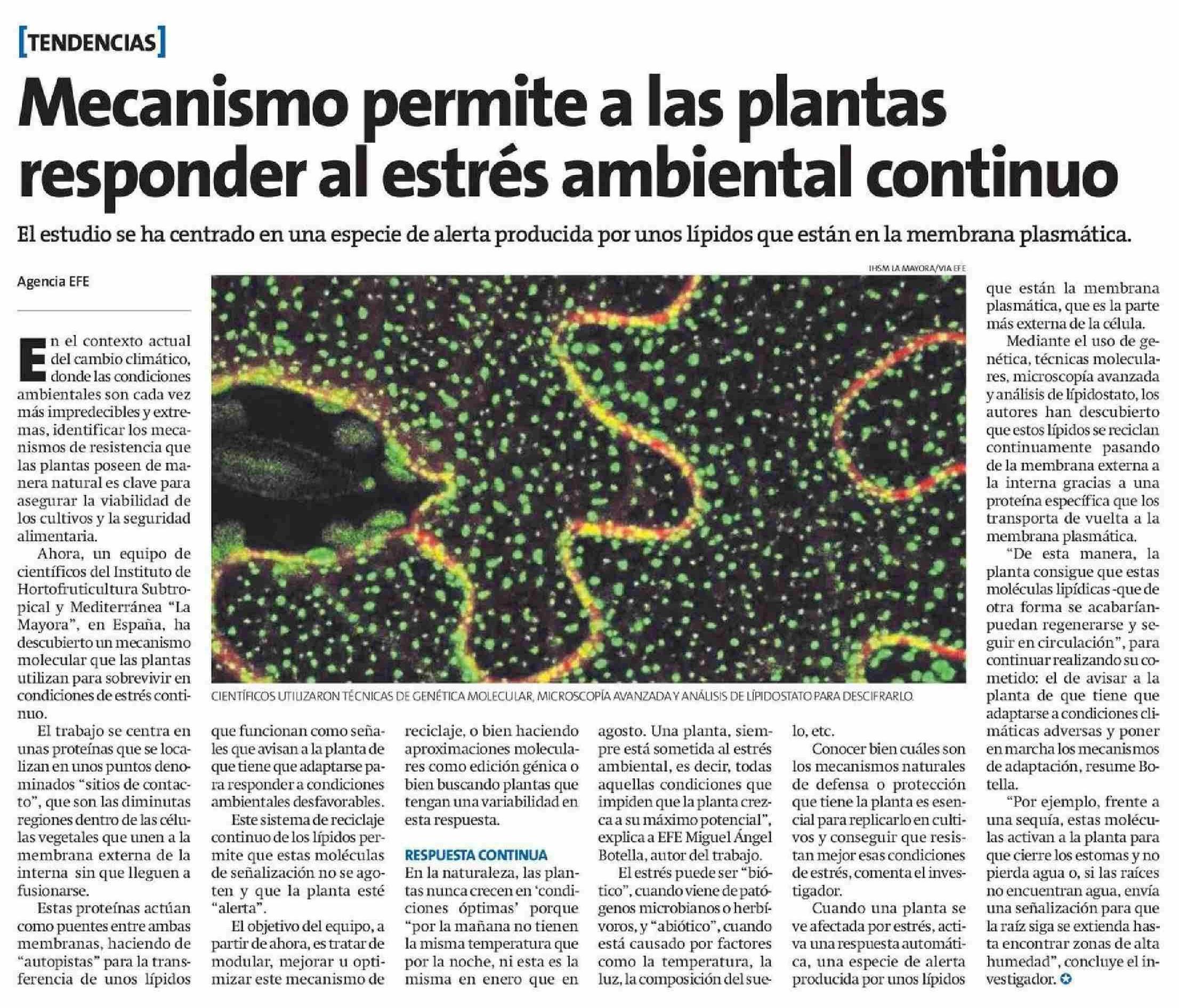 Mecanismo permite a las plantas responder al estrés ambiental continuo 05-06-2025 La Estrella de Antofagasta |