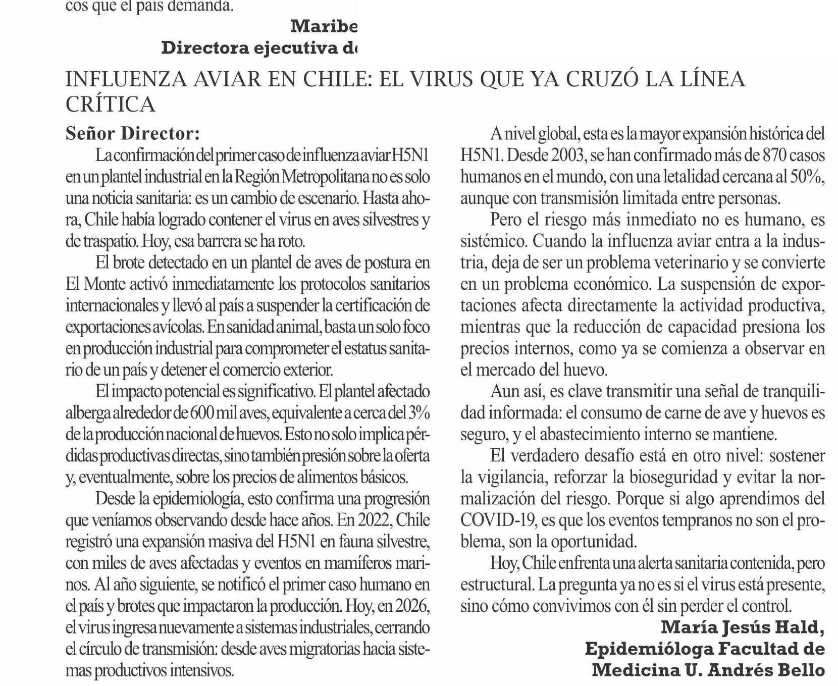 | Título: | INFLUENZA AVIAR EN CHILE: EL VIRUS QUE YA CRUZÓ LA LÍNEA CRITICA |