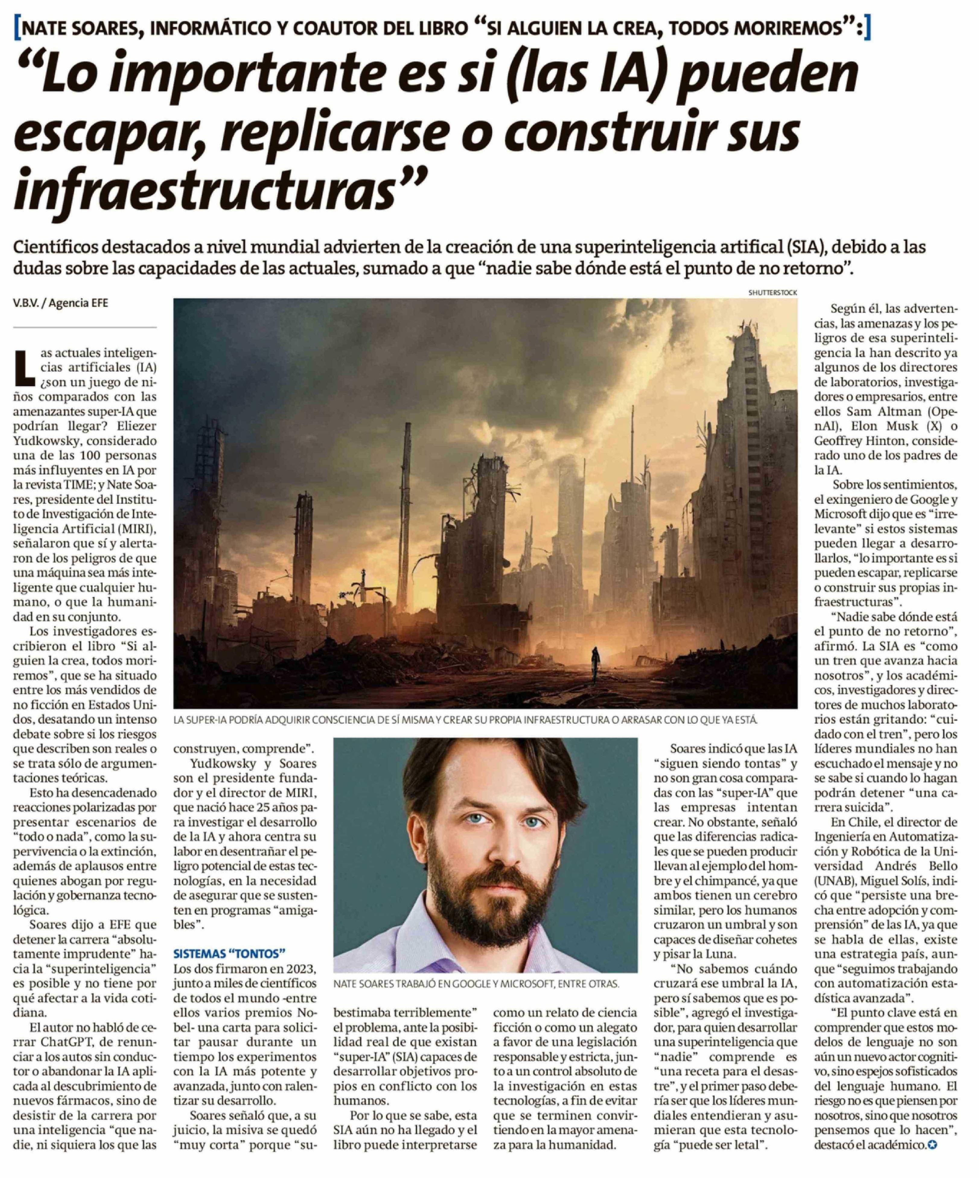 "Lo importante es si (las IA) pueden escapar, replicarse o construir sus infraestructuras" 13-03-2026 La Estrella de Chiloé |
