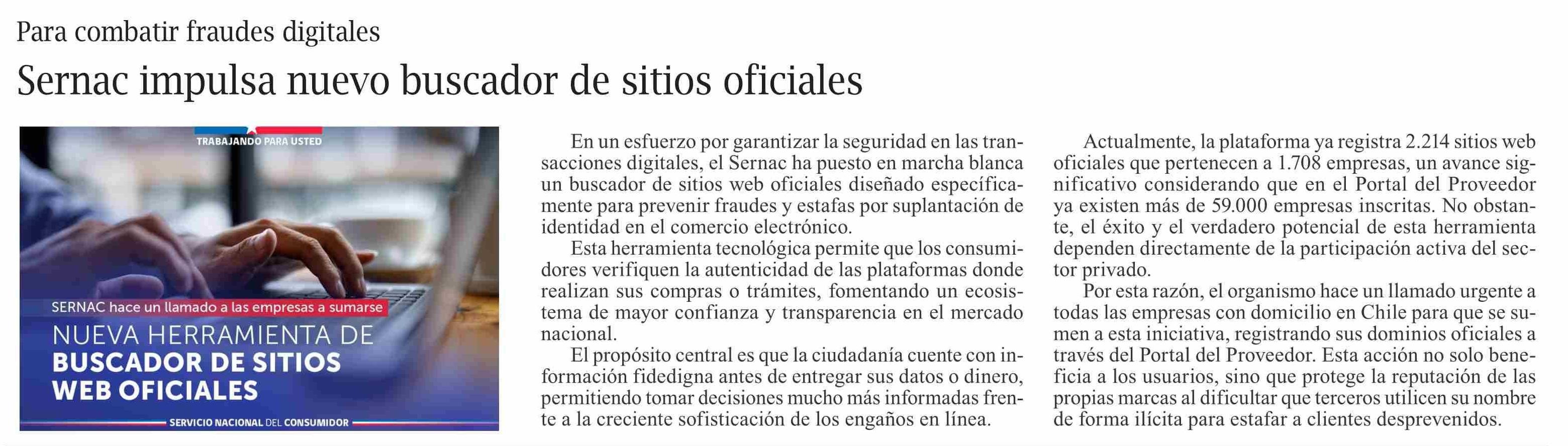 | Título: | Sernac impulsa nuevo buscador de sitios oficiales |