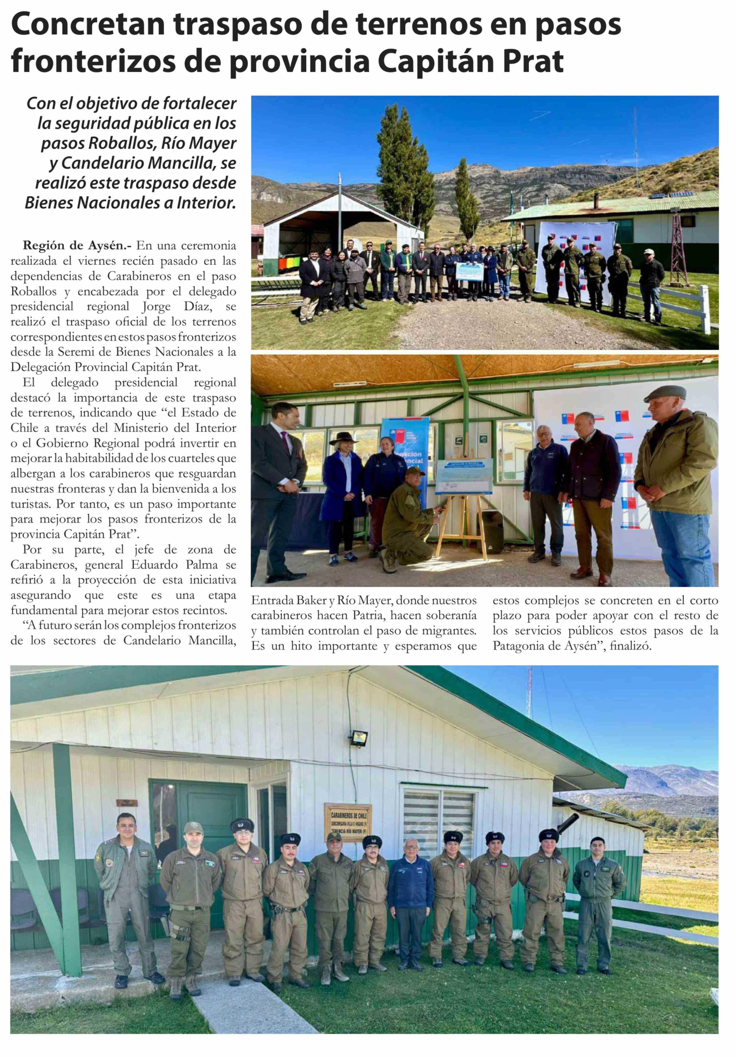 Concretan traspaso de terrenos en pasos fronterizos de provincia Capitán Prat 10-03-2026 El Divisadero |