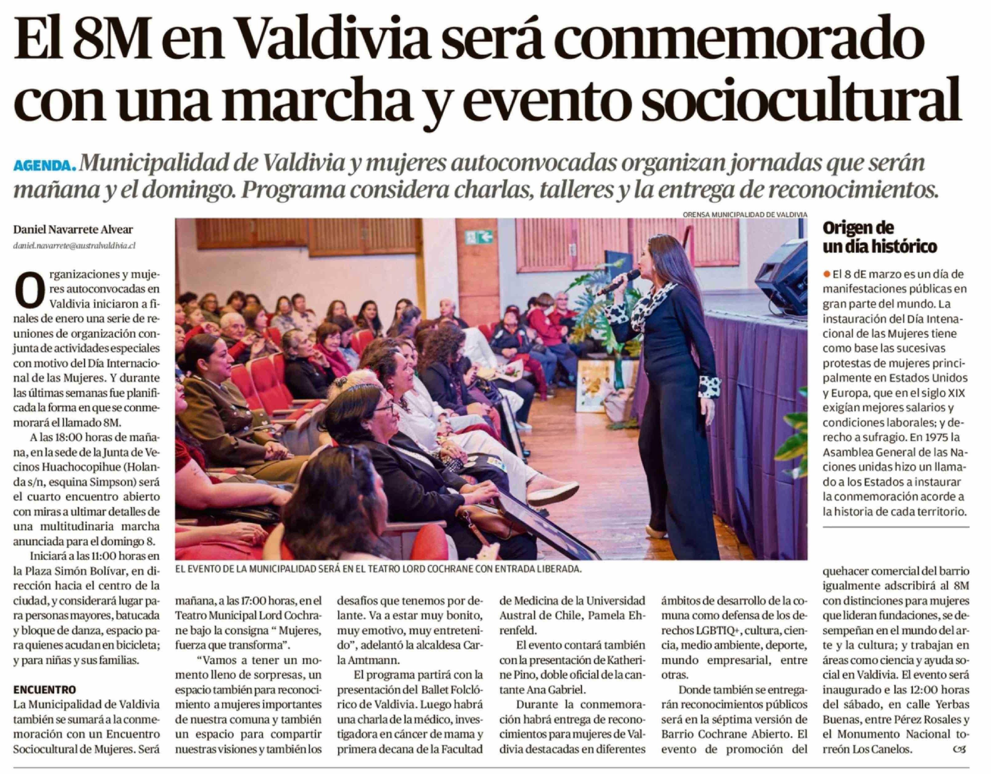 Título: El 8M en Valdivia será conmemorado con una marcha y evento sociocultural