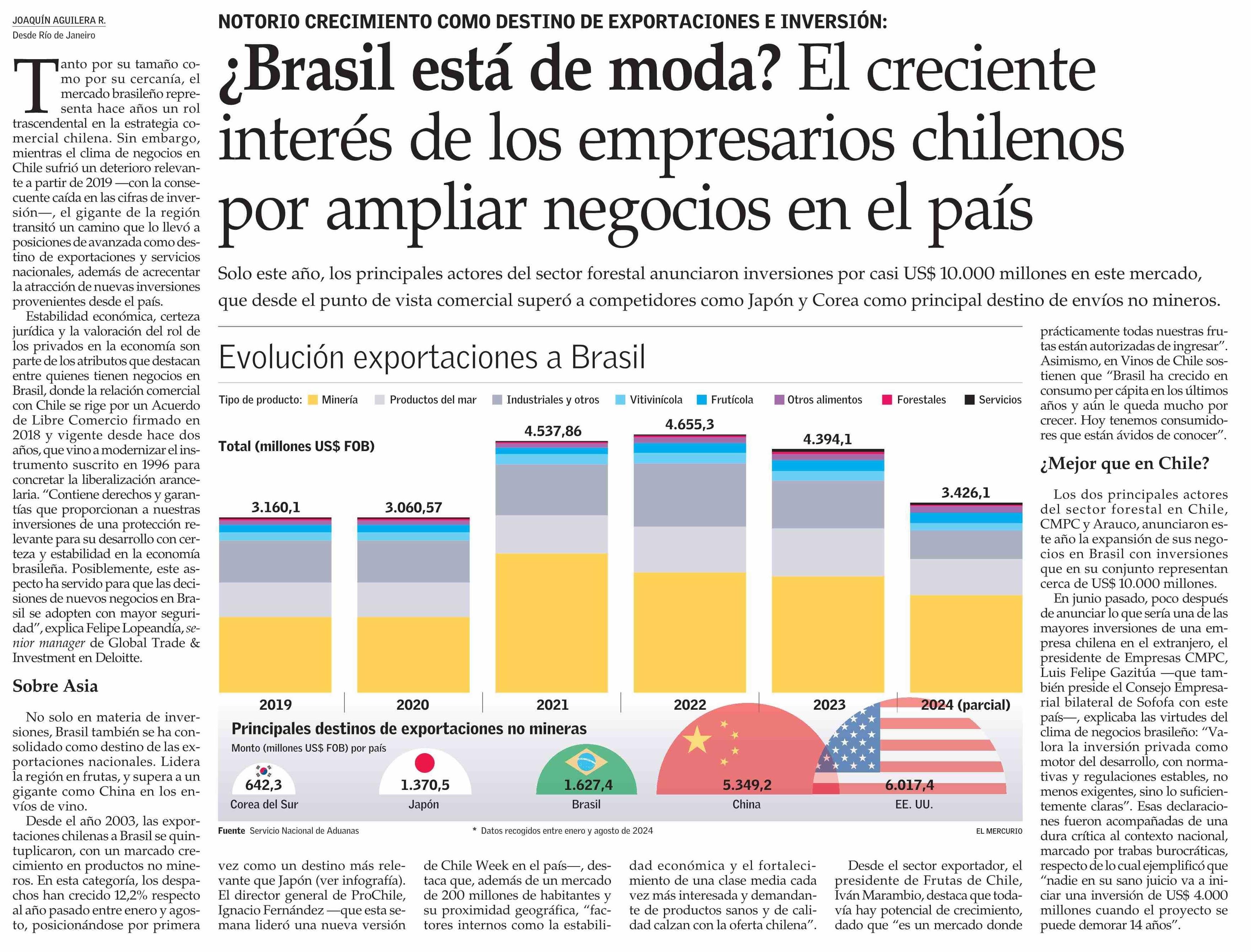 ¿Brasil está de moda? El creciente interés de los empresarios chilenos por ampliar negocios en el país 05-10-2024 El Mercurio |