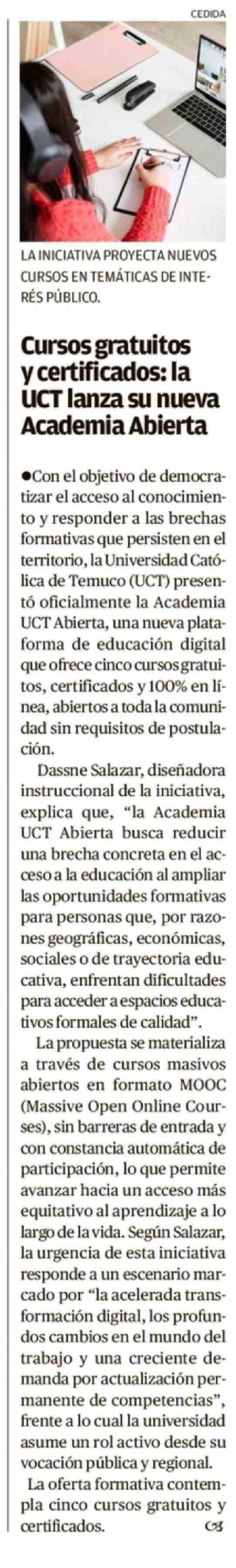 Título: Cursos gratuitos y certificados: la UCT lanza su nueva Academia Abierta