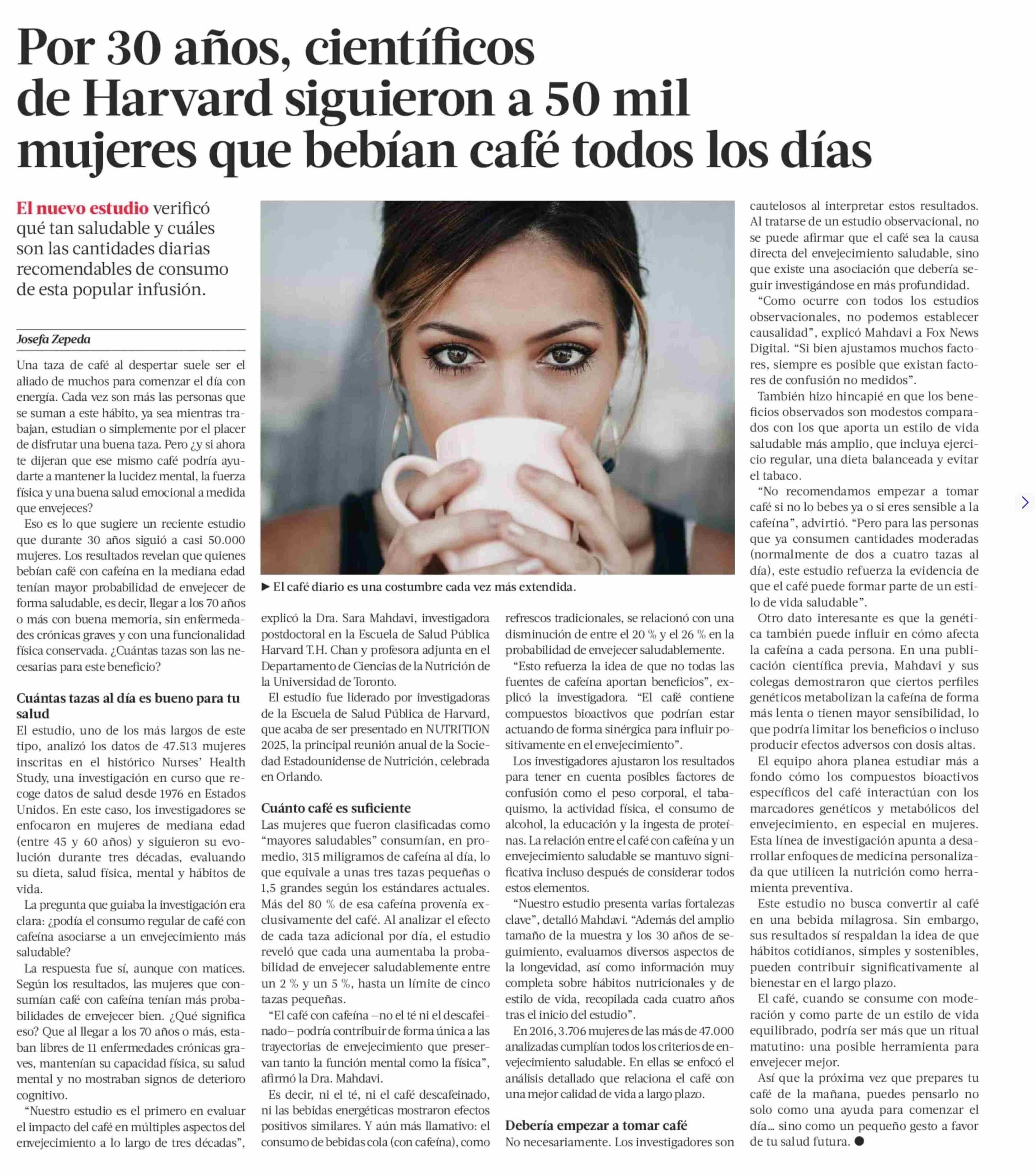 Título: Por 30 años, científicos de Harvard siguieron a 50 mil mujeres que bebían café todos los días