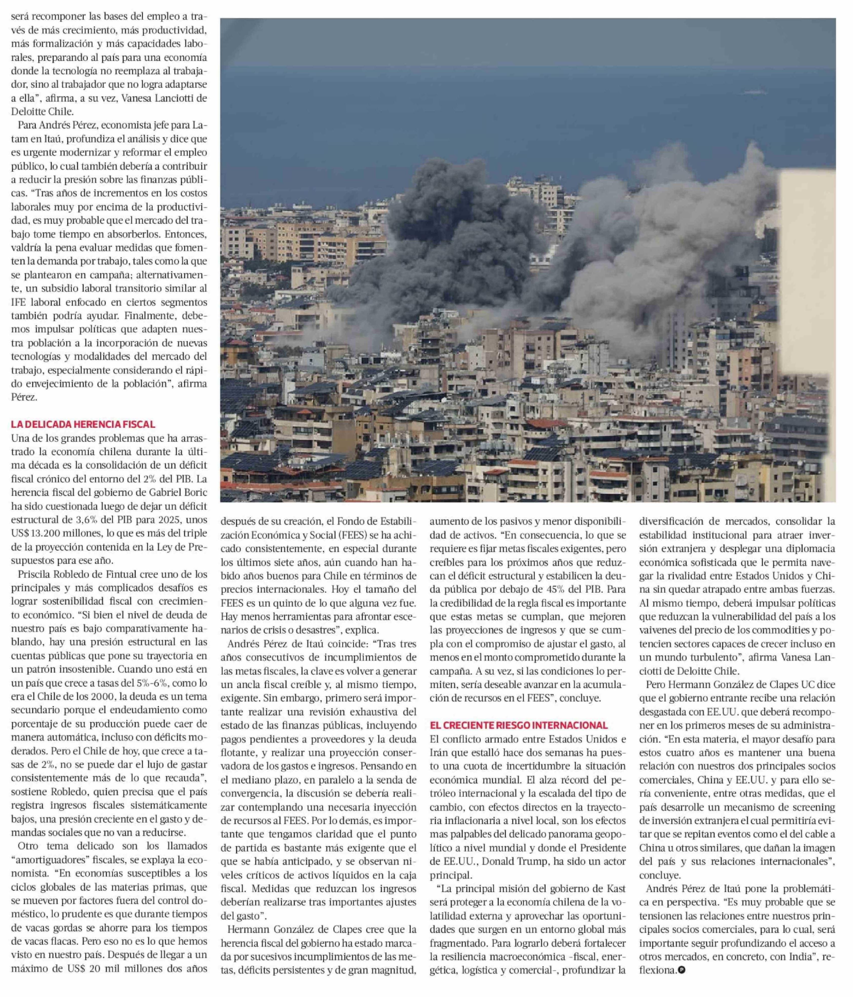 | Título: | La guerra en Medio Oriente asoma entre los principales riesgos del escenario económico que enfrenta Kast |