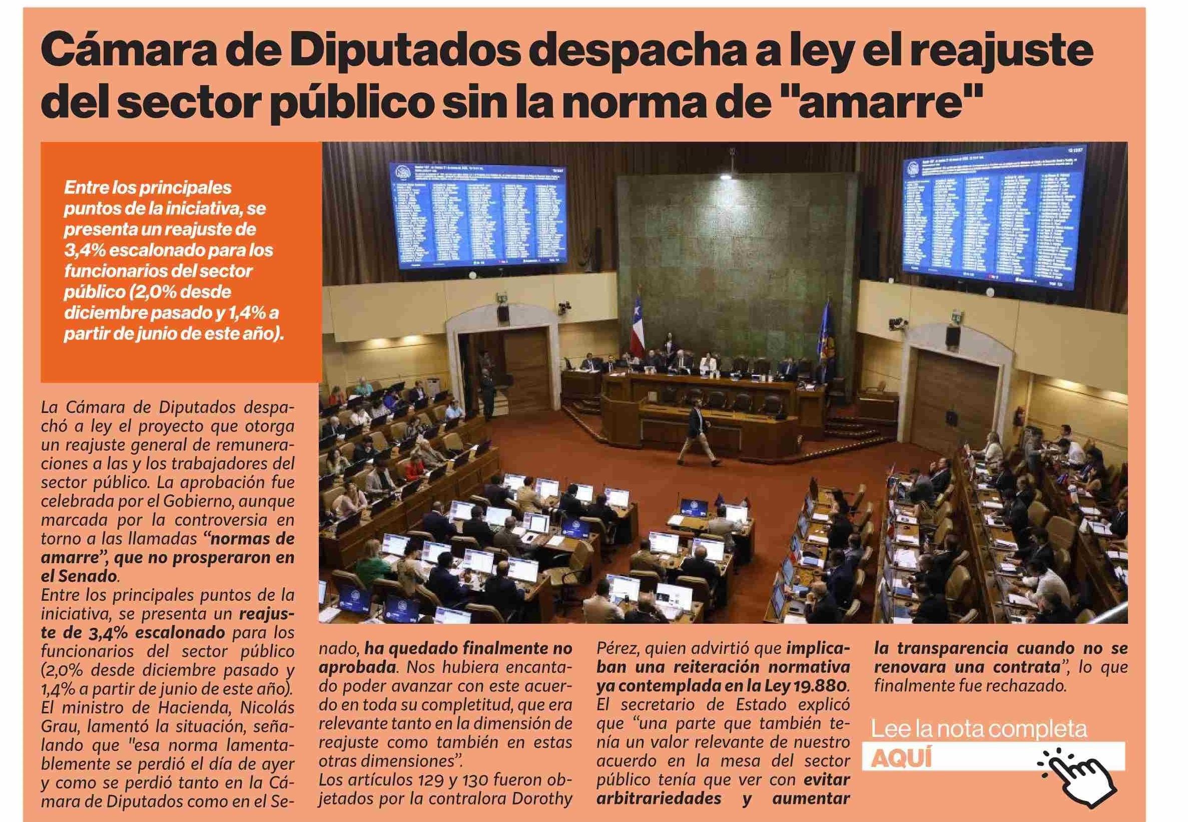 Título: Cámara de Diputados despacha a ley el reajuste del sector público sin la norma de “amarre”