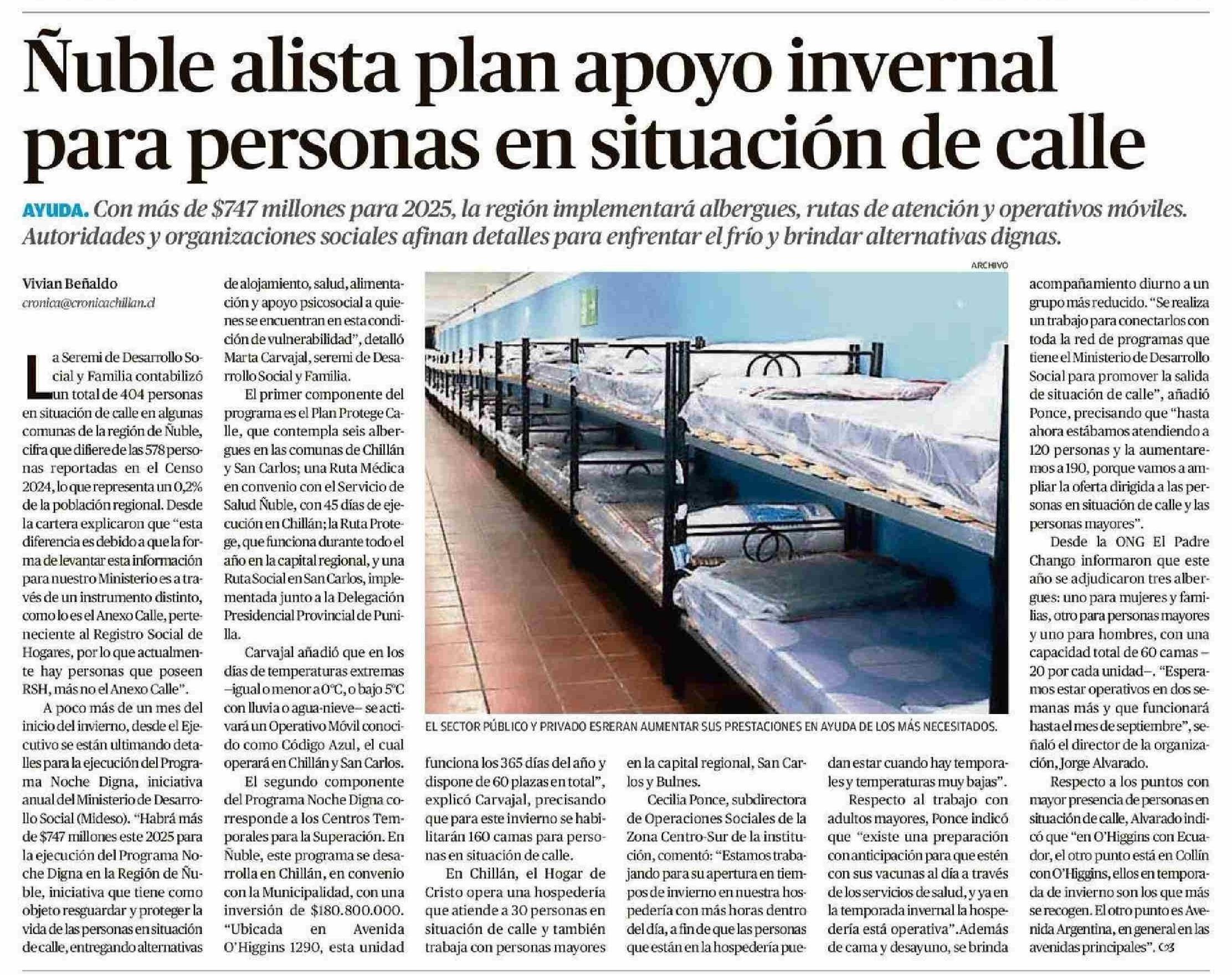 Ñuble alista plan apoyo invernal para personas en situación de calle 19-05-2025 Crónica de Chillán |