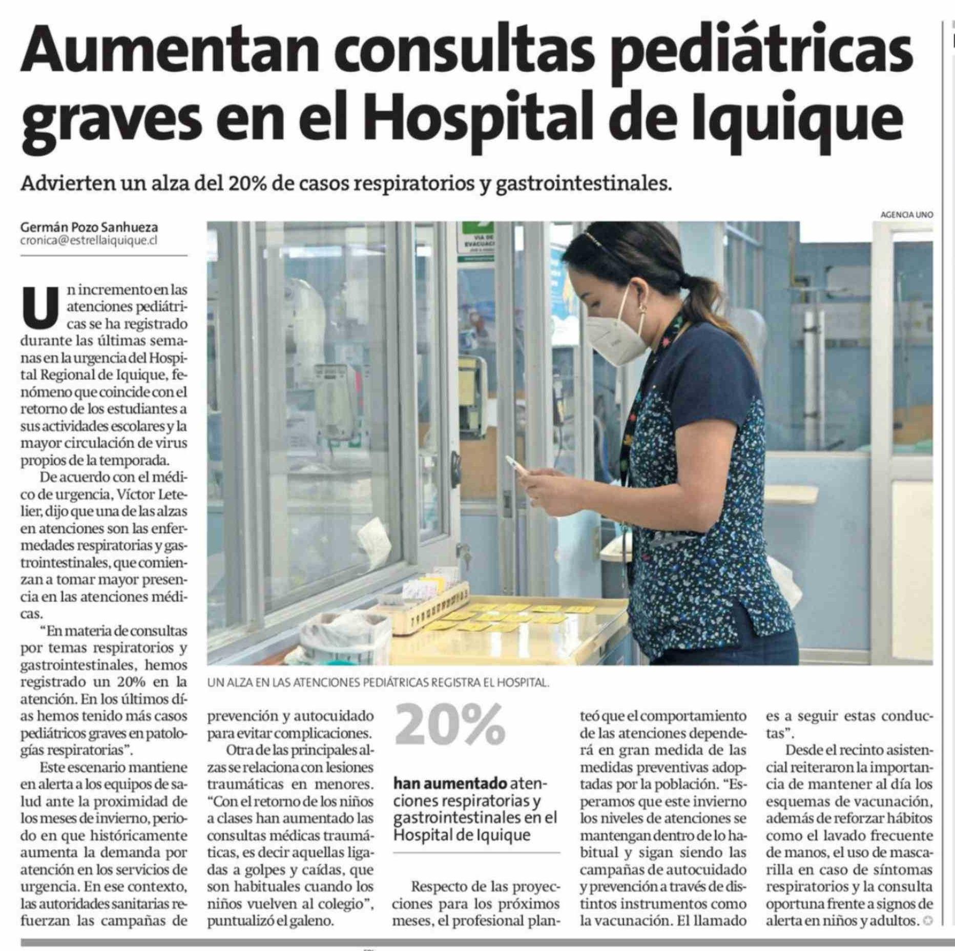 Aumentan consultas pediátricas graves en el Hospital de Iquique 13-03-2026 La Estrella de Iquique |